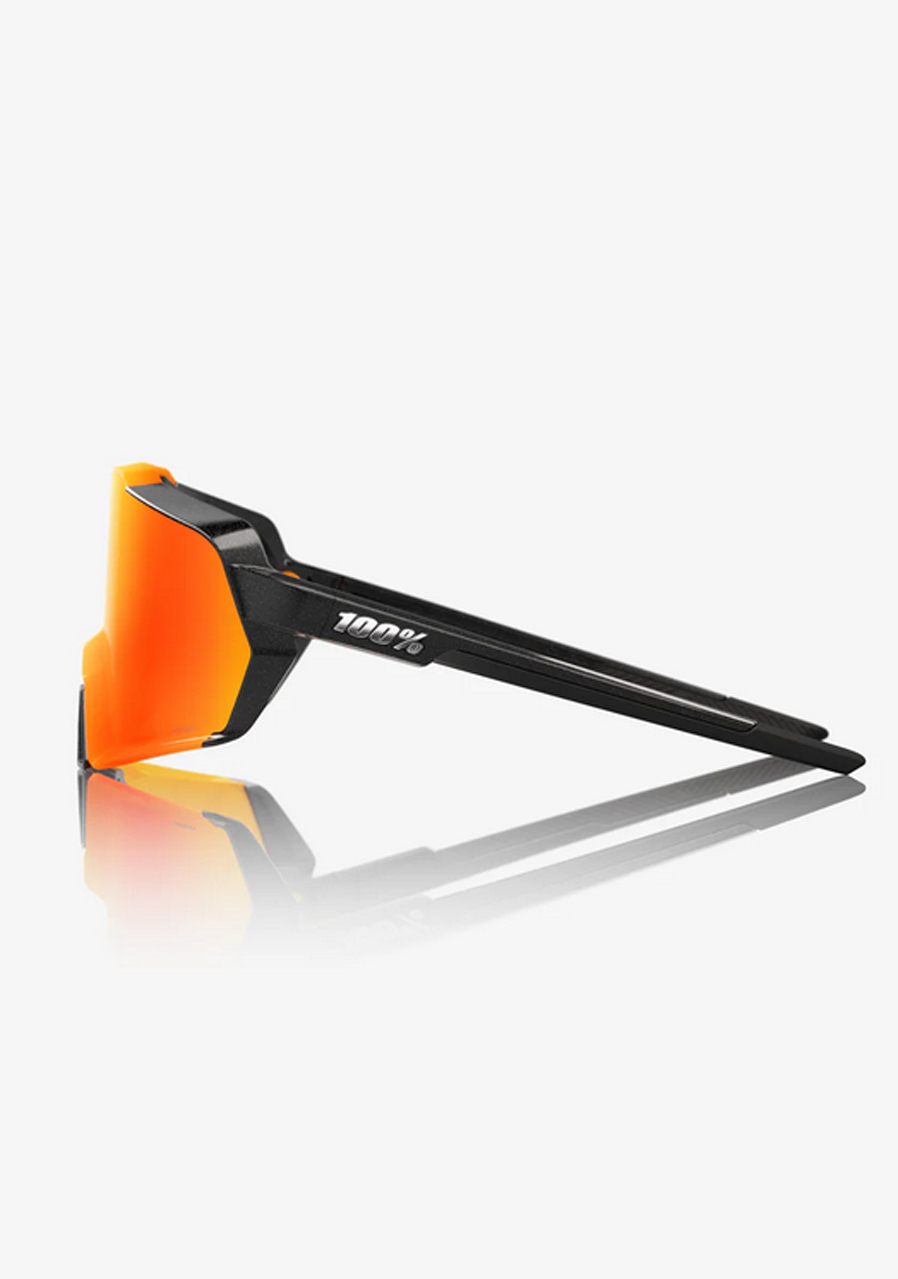 Premium 100% Korbin sunglasses in Gloss Metallic Black with HiPER Red Multilayer Mirror lenses combine performance technology with modern lifestyle design. They are designed for active athletes as well as everyday wear, with an emphasis on build quality, optical performance, and visual impact.