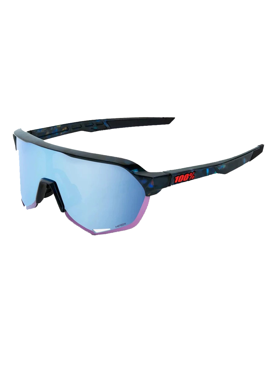 Sports sunglasses inspired by the legendary Speedcraft design - lightweight and highly durable polycarbonate lenses - 5.5-base cylindrical shield lens for enhanced peripheral vision and maximum protection - 360° visibility for unobstructed views - HiPER Blue Multilayer Mirror Lens technology for improved contrast and color saturation - light transmission 13% (category 3) ideal for bright conditions - 100% UV protection (UV400) - scratch-resistant interchangeable lenses - HYDROILO lens treatment repelling water, oil, and dirt - lower air scoops for better ventilation and reduced lens fogging - durable, flexible, and lightweight TR90 frame - ultra-grippy rubber nose pads and temple tips for secure and comfortable fit even during intense activity - includes clear spare lens (light transmission 93%, category 0) - frame color: Black Holographic - lens color: HiPER Blue Multilayer Mirror.