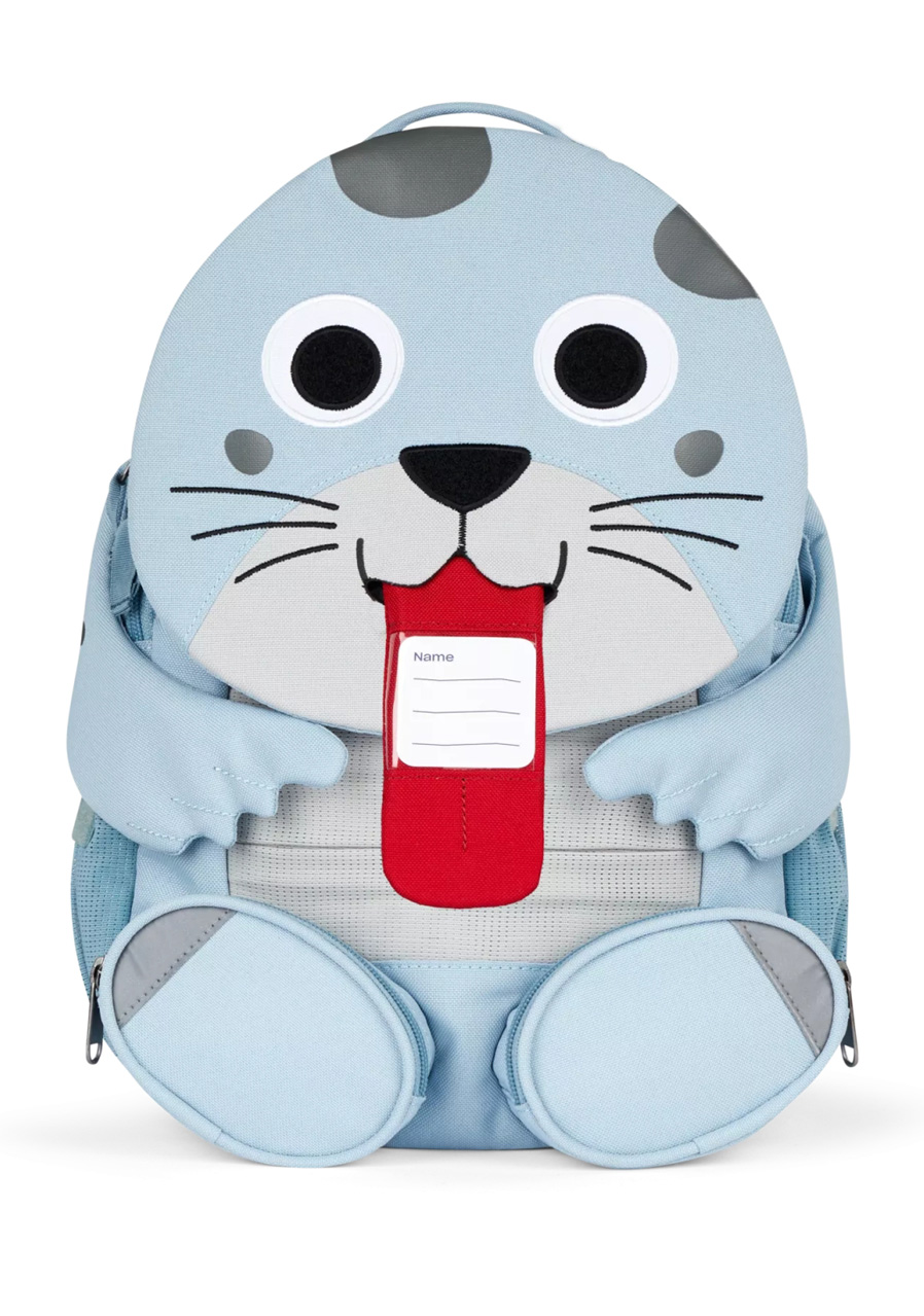 The Affenzahn seal-shaped backpack is a great companion for children to kindergarten and on their first trips. The playful design with a detailed animal motif will immediately appeal to children and the backpack will become their everyday friend. Thanks to the ergonomically shaped shoulder straps and adjustable chest strap, it is comfortable to wear and holds well on the back. Practical pockets and easy-to-use fastening support the child's independence and teach them to organize their own things in a playful way. In addition, the manufacturer uses recycled materials, thereby saving nature.