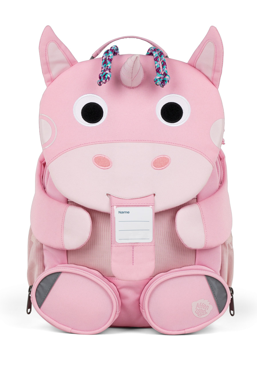 Advantages: Low weight, ergonomic solution for children’s backs, use of recycled materials, functional detail in the form of a pull-out tongue with name tag.