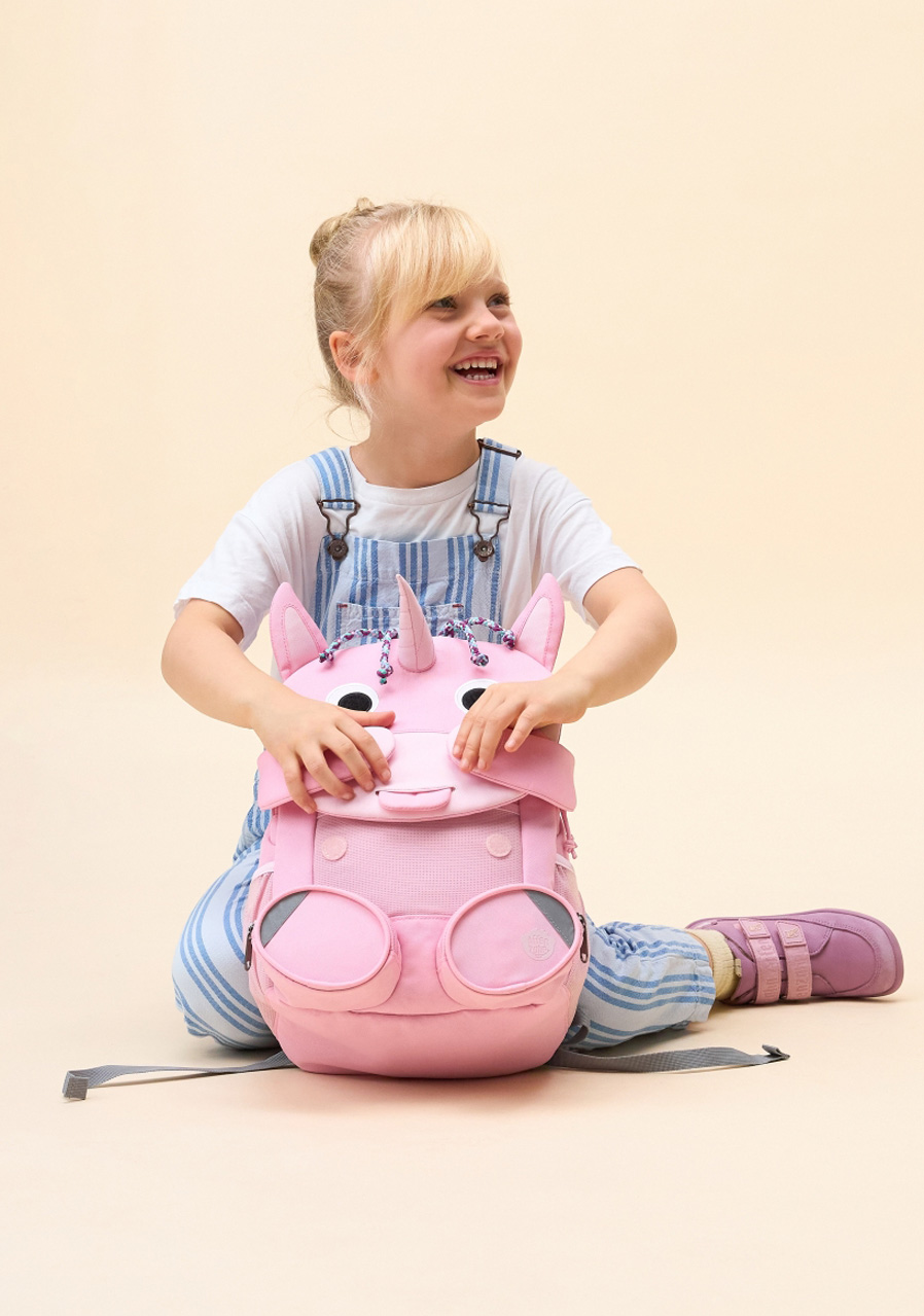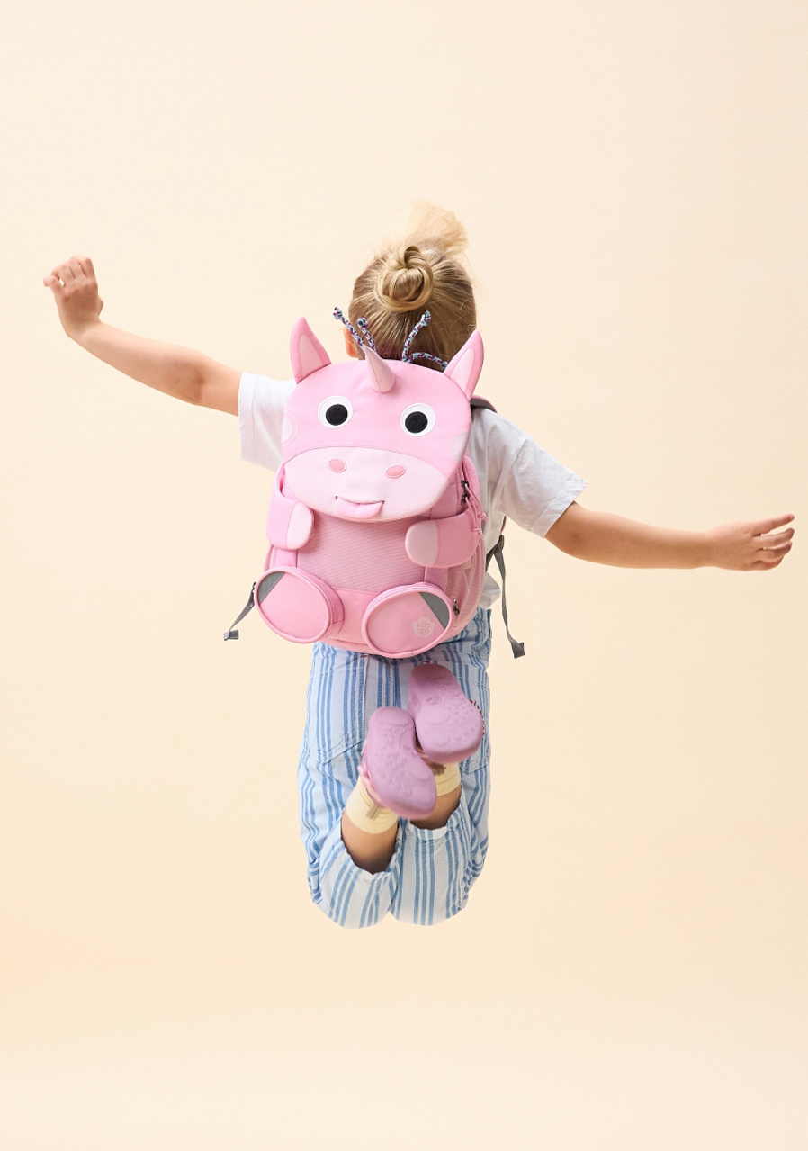 Children’s backpack with an 8-litre capacity designed for children approximately 3 to 5 years old. The ergonomic construction is adapted to children’s backs with emphasis on low weight, proper weight distribution and stability during movement.