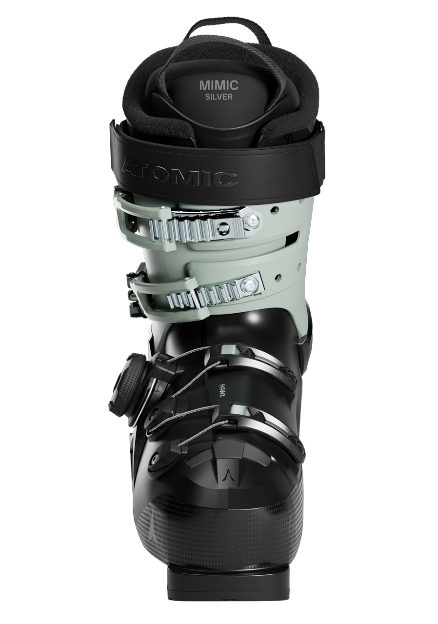 BOA® Fit System allows micro-adjustment of the instep area, ensuring even tightening and eliminating pressure points. Mimic Gold W liner thermoforms to the foot, offering soft cushioning and reliable fixation. Power Shift allows adjustment of the chimney angle and flexion. GripWalk soles make walking easier and ensure good grip even on hard surfaces.