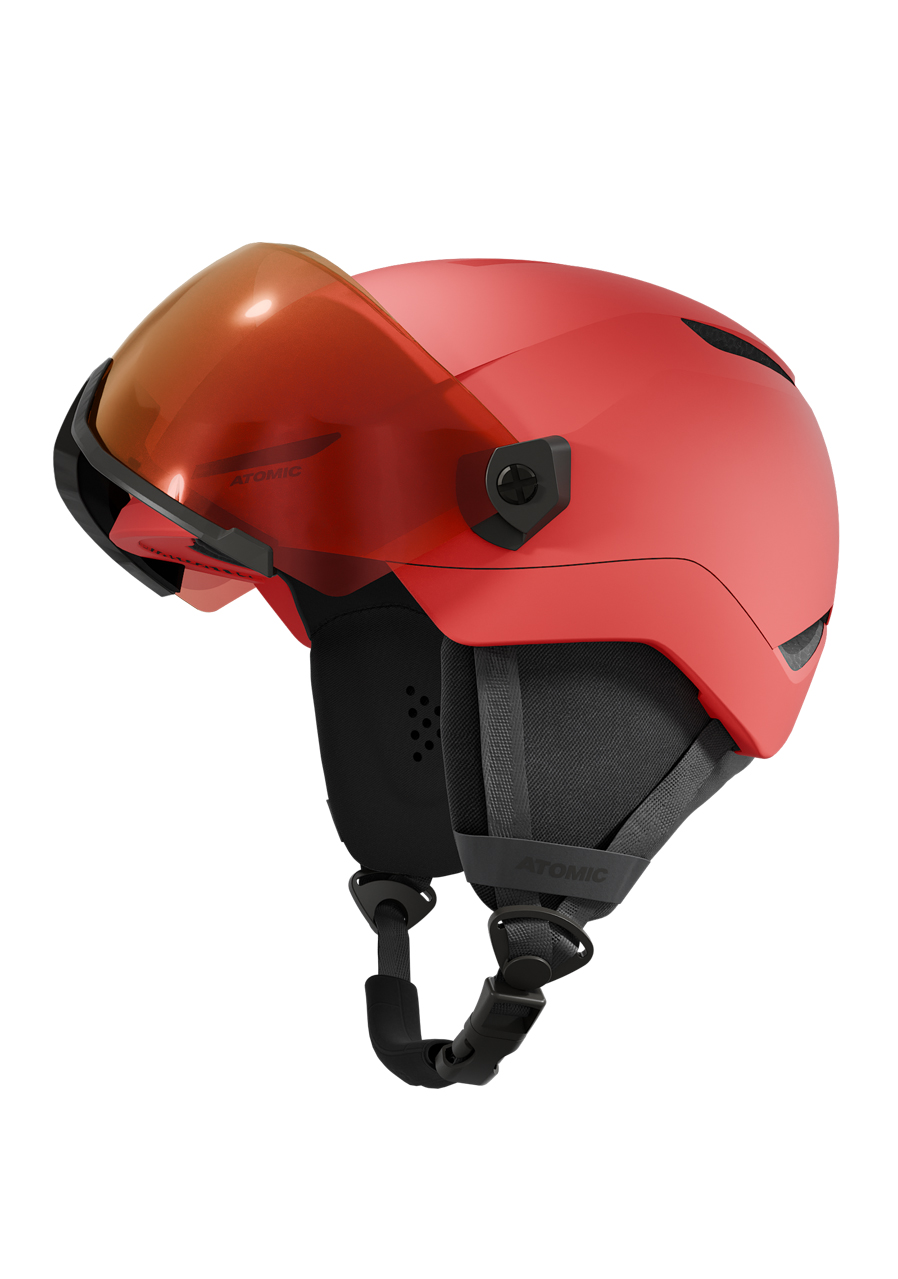 Atomic Revent Visor JR Red is a lightweight and safe children's helmet with a built-in visor that replaces glasses and provides a wide, clear and comfortable view. The In Mold construction ensures low weight and high head protection. Thanks to the 360 Fit system, the helmet adapts precisely to the shape of the head and stays stable all day on the slope. The integrated visor protects the eyes from the sun, wind and snow and children will appreciate it for comfortable use without pressure on the face. Soft padding and effective ventilation support a pleasant climate while riding.