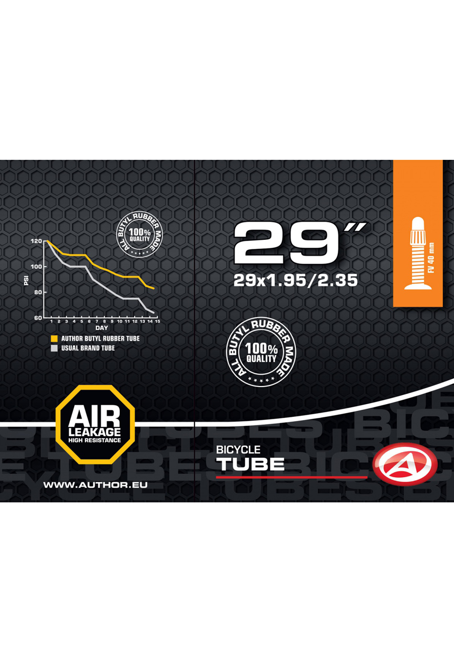 The Author AT-MTB-29 is the ideal choice for riders seeking a tough, easy-to-maintain inner tube for their 29" mountain bike. The Schrader valve allows for easy inflation at gas stations or with standard bike pumps.