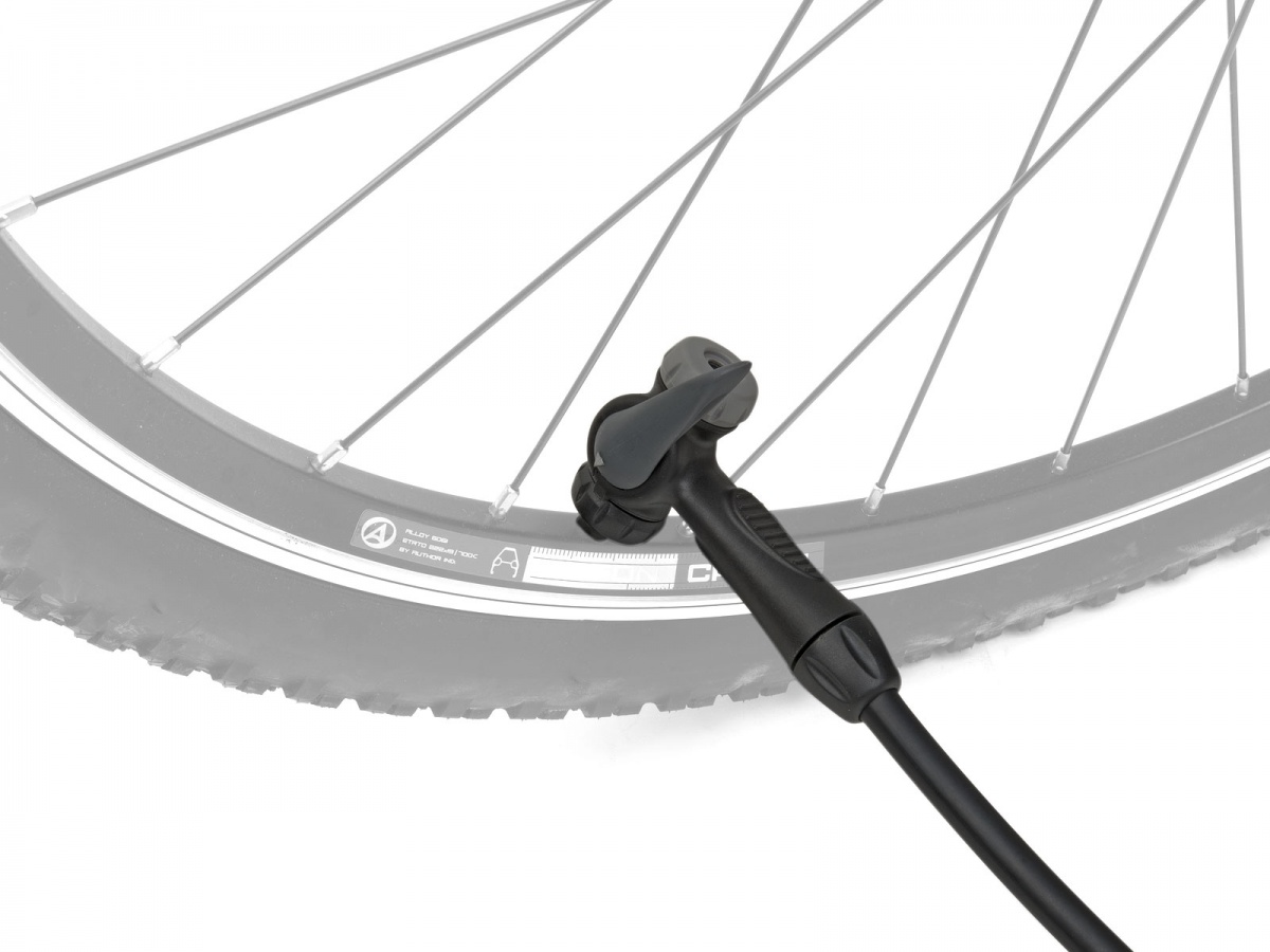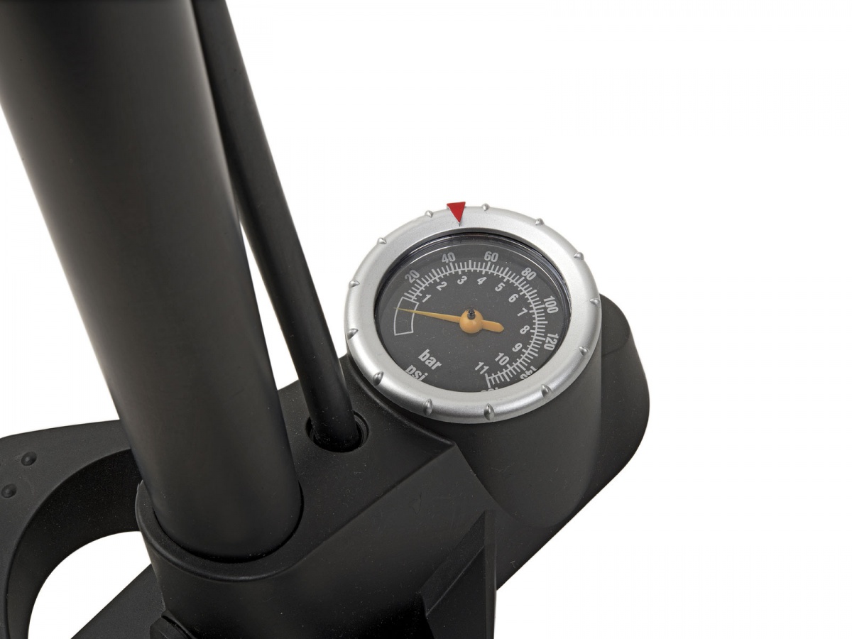 Specifications: Floor pump with pressure gauge DualHead 2 – universal head for all valve types Barrel: 32 mm diameter × 540 mm length Max pressure: 160 PSI / 1.1 MPa Material: Composite + steel Color: Black / white Use: MTB, road, city, trekking bikes