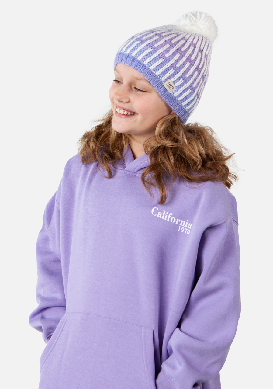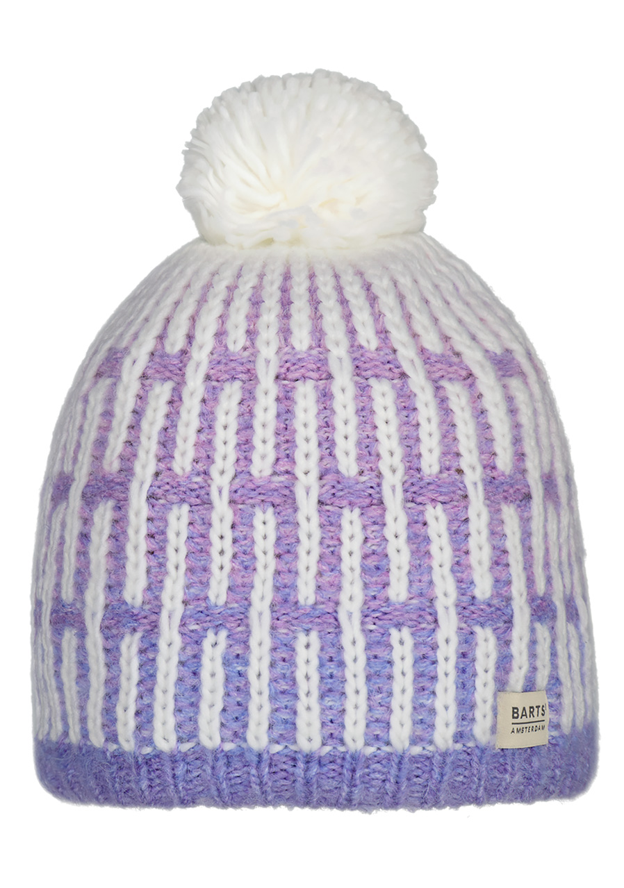 The Barts Poppsy Beanie in a soft purple color provides children with reliable protection against the cold during outdoor activities. The flexible and soft material comfortably hugs the head and keeps them warm during winter games. The universal cut and pastel purple color ensure easy combination with children's winter clothing.