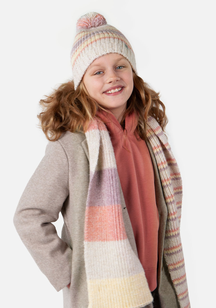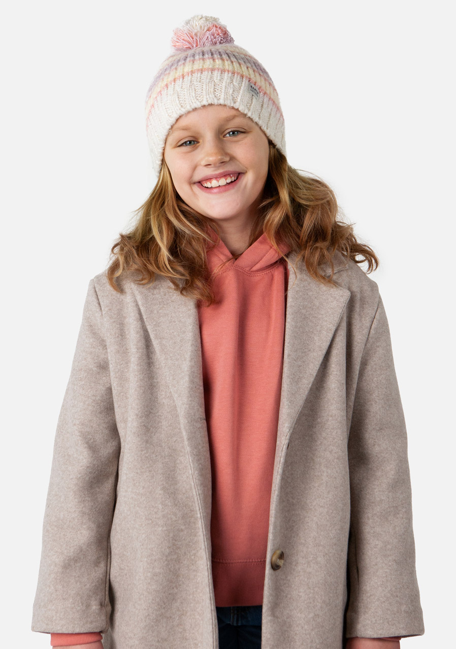 The Barts Tyanna Beanie in cream provides reliable protection for children from the cold and wind. It is made of soft and stretchy knit that is comfortable to wear and provides thermal comfort during winter activities. The neutral cream shade and delicate design make the hat a stylish accessory that can be easily matched with any winter outfit.