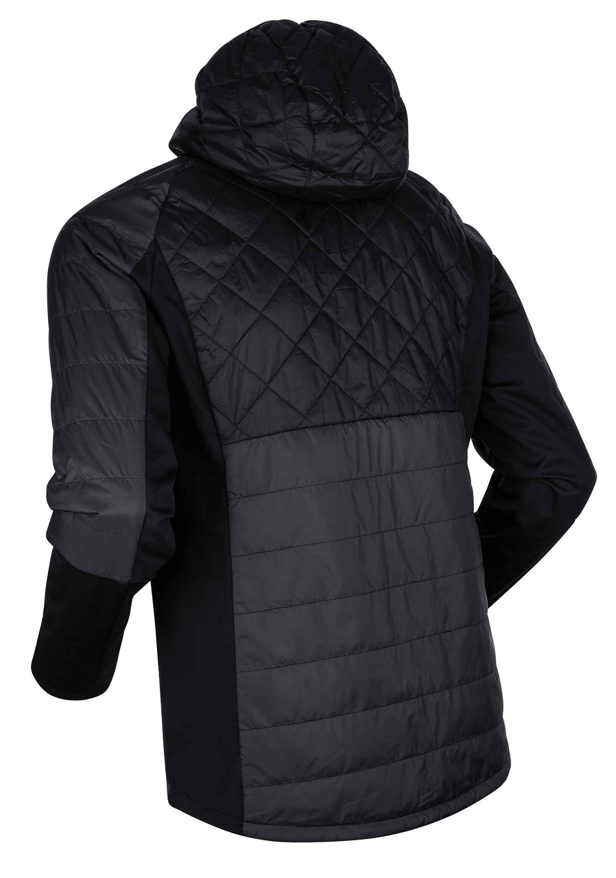 Hybrid Construction: Insulated front panel with ultralight fill plus stretch side and sleeve panels