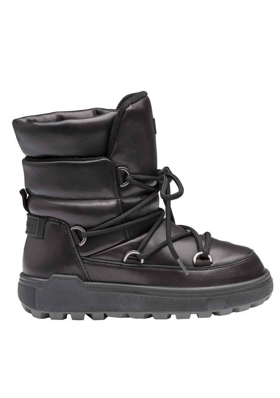 The upper blends premium leather with water‑repellent technical nylon to fend off snow and moisture. Inside, a plush synthetic‑fur lining delivers exceptional thermal comfort even in severe cold. A rugged rubber outsole with deep lugs provides outstanding traction on slippery surfaces. Metal‑hook lace fastenings emphasize the sporty style and ensure a secure, precise fit.