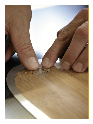 SPECIÁL: titanalová vložka - technologie pro vyšší torzní tuhost, naolejovaný bambus - pravé dřevo povrch, logo z nerezové oceli, ruční výroba v Německu