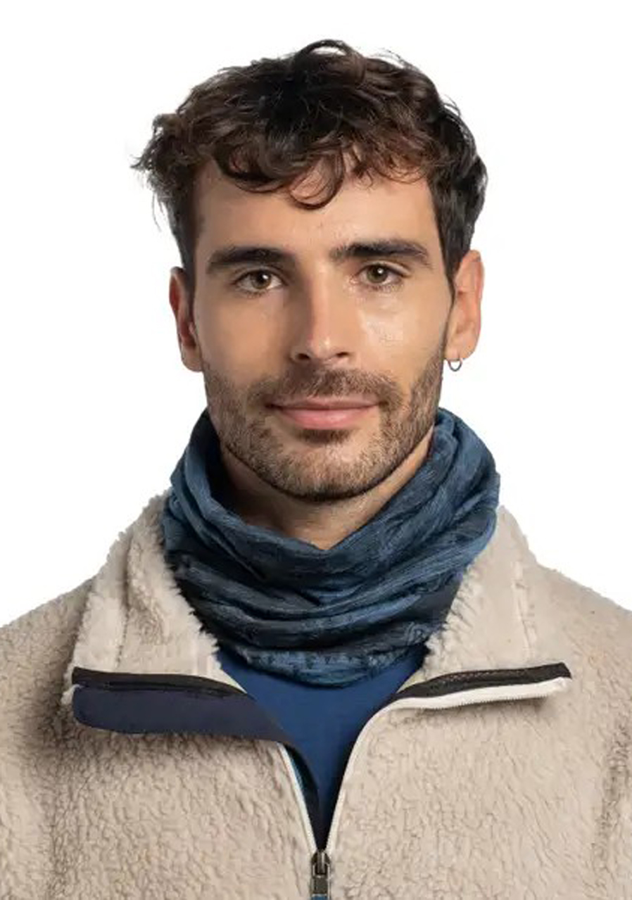 The Buff Merino Lightweight Prints Matewa Tempest neckwarmer combines the benefits of 100% merino wool with a bold “Tempest” design inspired by stormy air currents. Its ultra-lightweight, seamless construction makes it perfect for year-round use—from crisp spring mornings and summer mountain hikes to blustery autumn runs. The fine knit gently wraps the neck without pressure points, regulates temperature, and wicks moisture for all-day comfort.