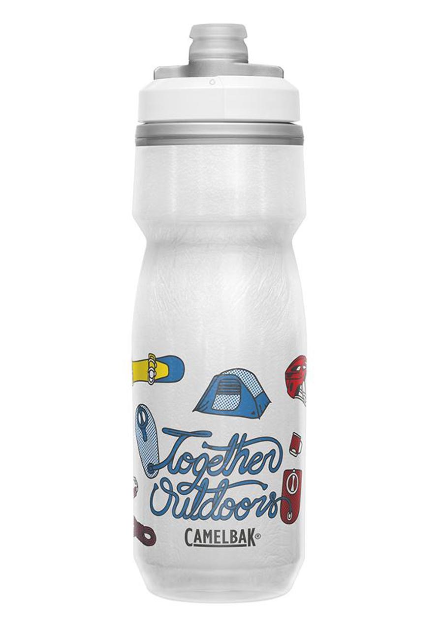 The Camelbak Podium Chill 0.62l Outside Together kids' bottle is the ideal companion for young athletes and adventurers. With this bottle, drinking is easy and refreshing, even during the most demanding activities. Thanks to its special insulating layer, it keeps drinks cool for longer, making it perfect for hot days and active trips.
