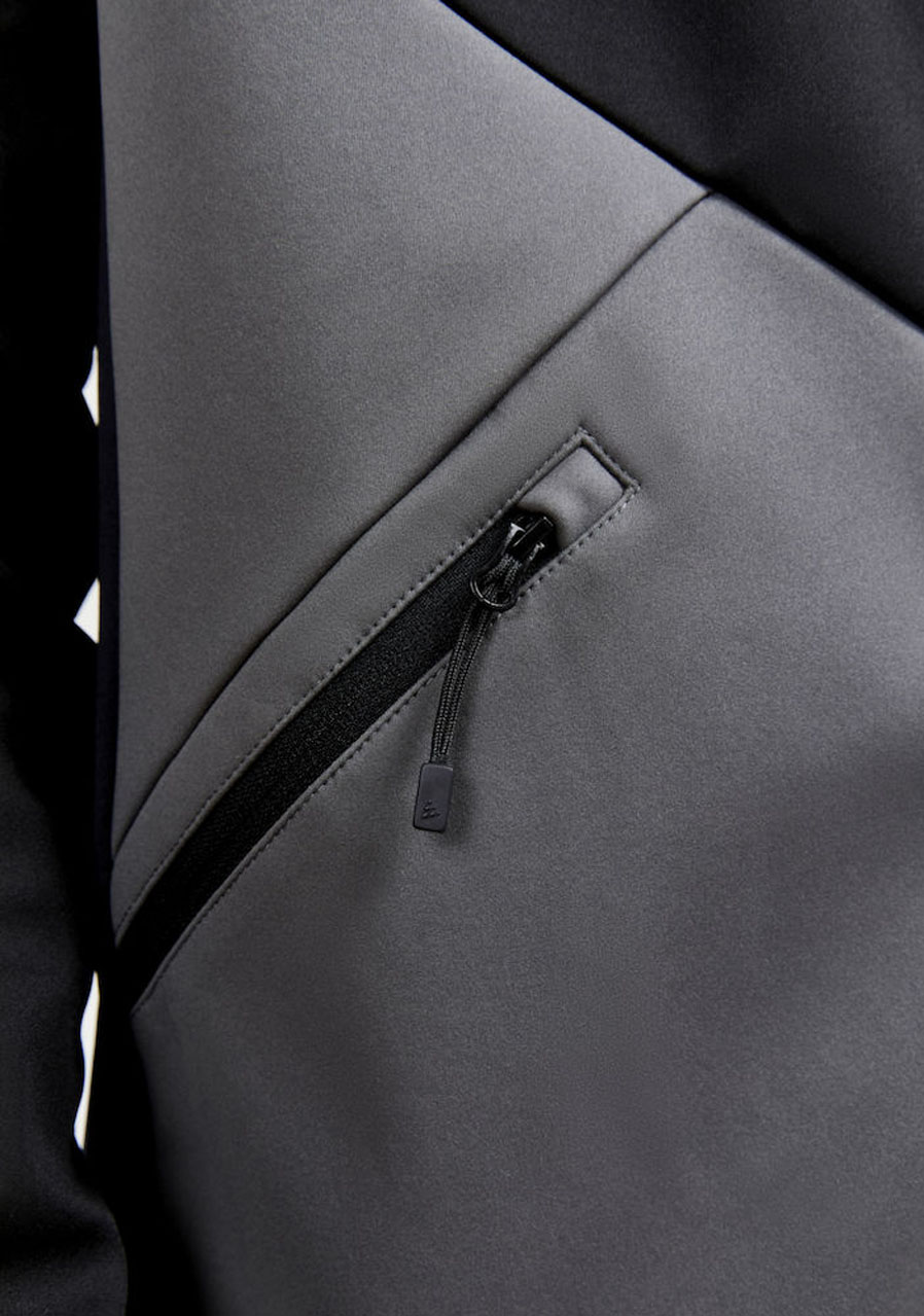 - softshellová bunda s kapucí CRAFT Glide s membránou VentAir je určená na pohodové běžecké lyžování nebo jiné outdoorové aktivity v zimním období. Materiál: 1. vrstva - 100% polyester, 2. vrstva (membrána VentAir) - 100% polyuretan, 3. vrstva - 100% polyester Spodní zádová část - 92% recyklovaný polyester, 8% elastan Parametry: Vodní sloupec: 8000 mm; Prodyšnost: 8000 g/m2/24hod. - třívrstvá technologie s odolností vůči větru a vodě - v podpaží a po stranách prodyšný elastický materiál - 2 přední kapsy na zip - kapuce s regulovatelným objemem - rukávy a spodní část bundy ukončené do elastické paspule - lepené detaily