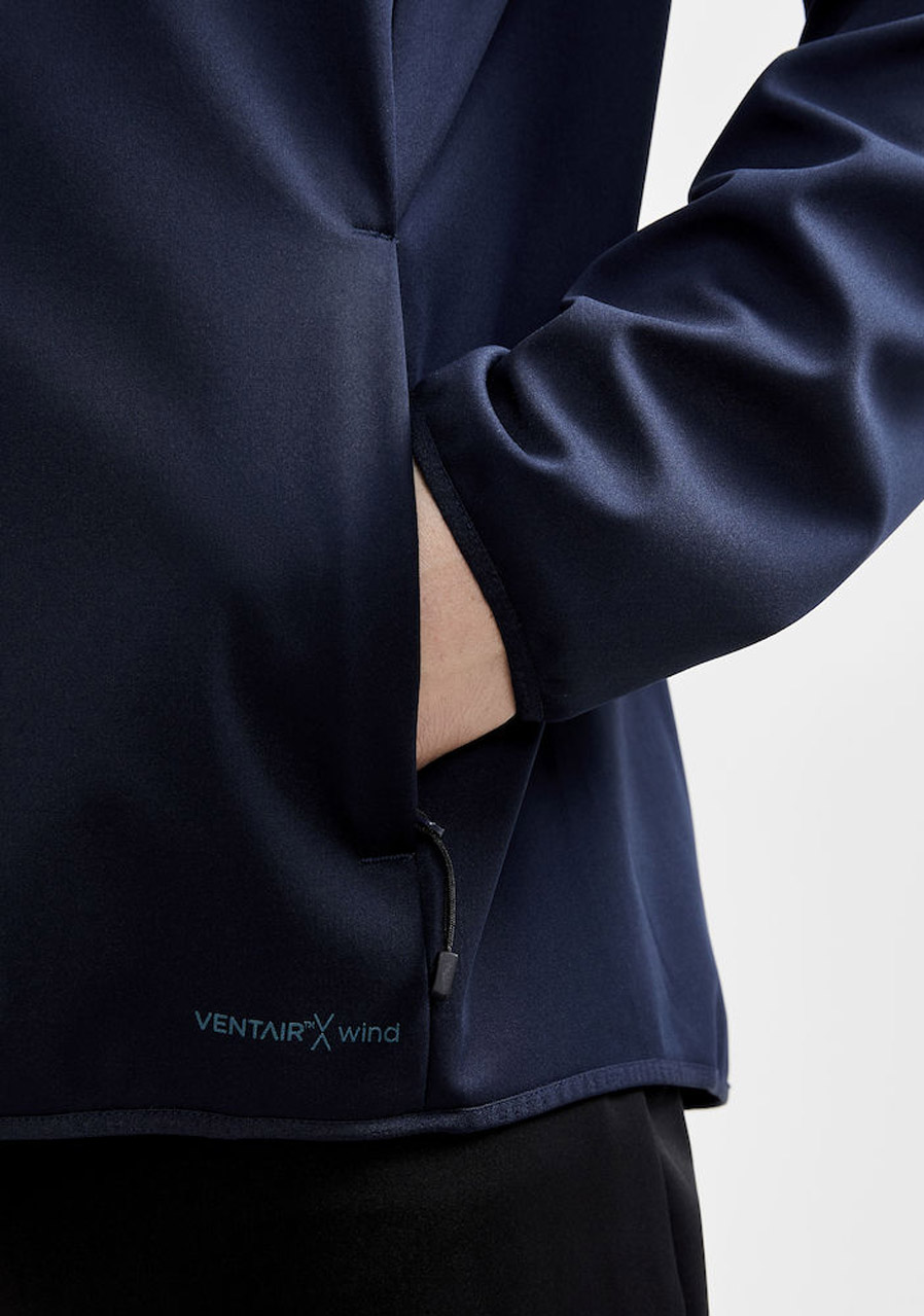 softshellová bunda CRAFT Glide s membránou VentAir, určená na pohodové běžecké lyžování nebo jiné outdoorové aktivity v zimním období. Materiál: 100% polyester; 87% polyester, 13% elastan Membrána VentAir Wind: 100% polyuretan Parametry: 8000mm2/8000g/m2/24hod. - třívrstvá technologie - větru a voděodolná membrána VentAir - v podpaží a ve střední části zad příjemný elastický materiál - zip z vnitřní strany podložený légou a ukončený do ochrany brady vůči oděru - reflexní detaily na předním díle - raglánové rukávy - 2 přední kapsy na zip - příjemný fleece v límci - předtvarované rukávy - rukávy a spodní část bundy ukončené do elastické paspule
