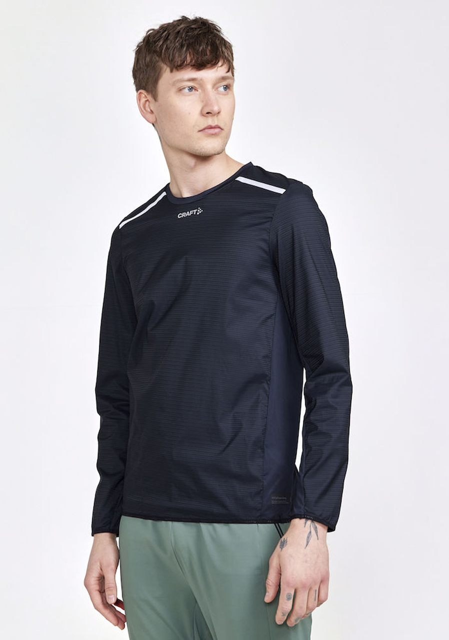 Pánské ultralehké běžecké triko CRAFT PRO Hypervent LS Wind s dlouhým rukávem a ochranou proti větru v přední části.