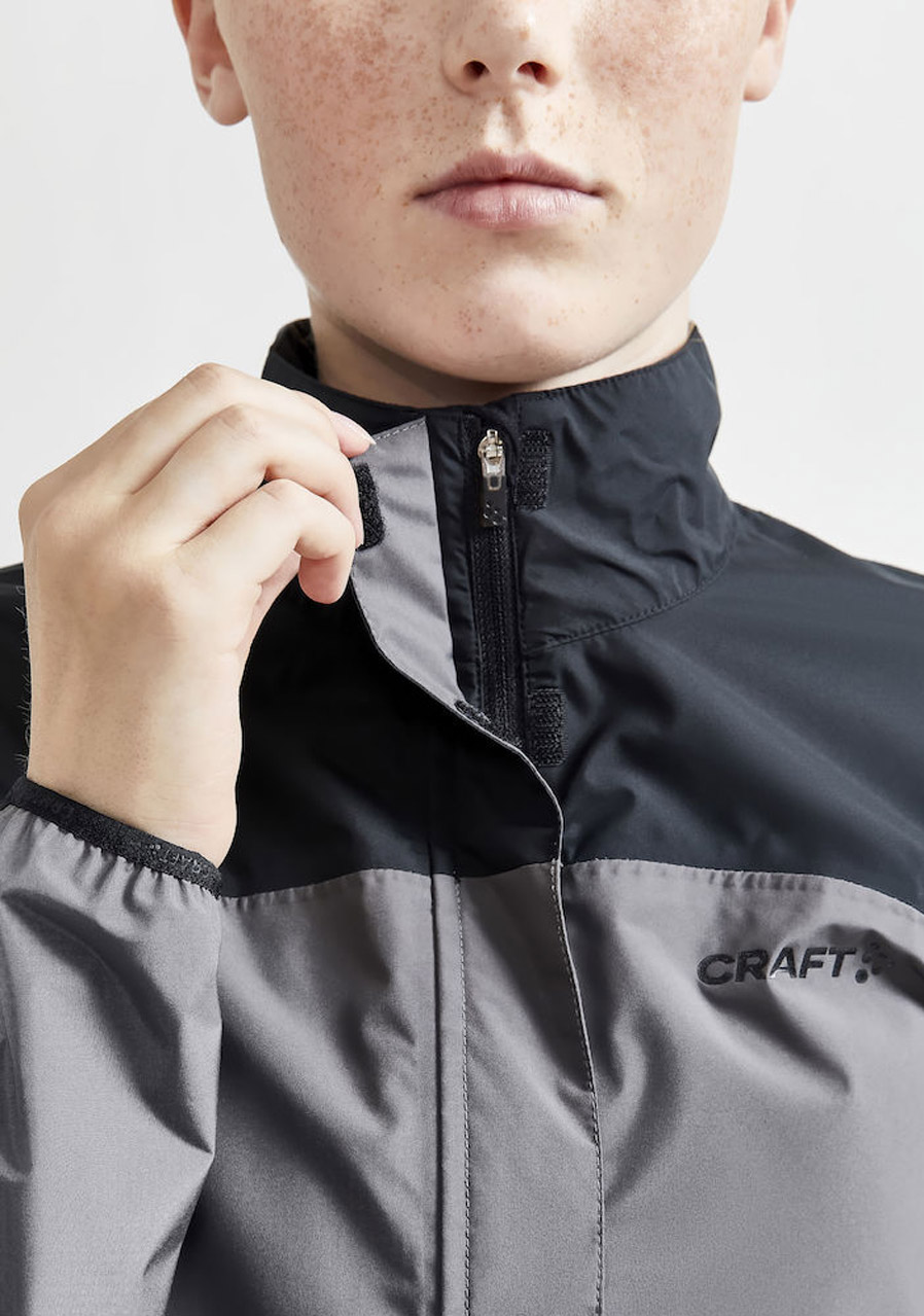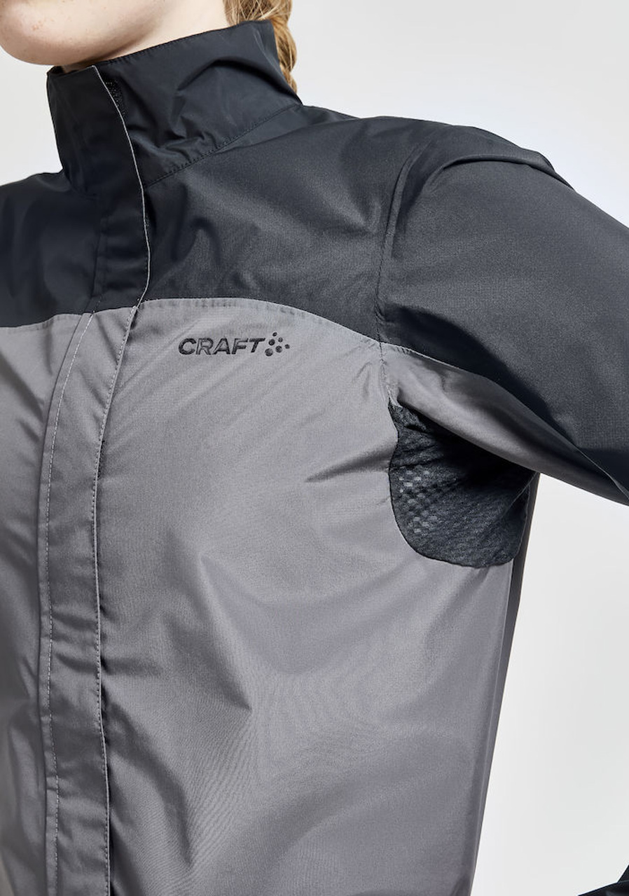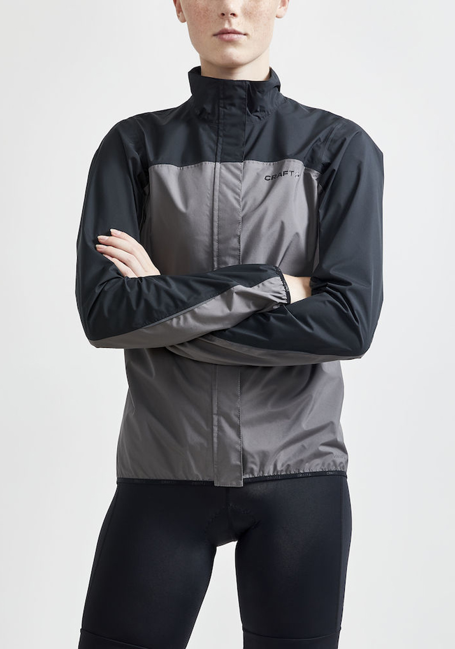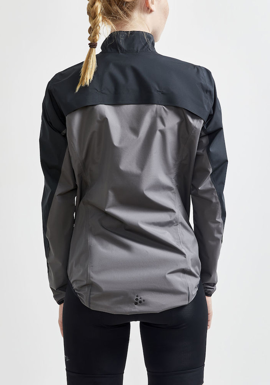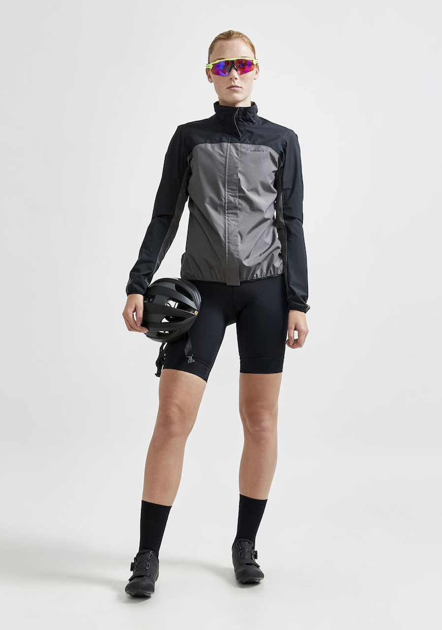 The CRAFT CORE Endur Hydro W cycling jacket for women offers effective protection against wind and rain, making it ideal for challenging weather conditions. The front is made from polyester while the back uses polyurethane for added waterproofing. With a water column of 8,000 mm and breathability of 8,000 g/m²/24h, this jacket ensures a balance of dryness and comfort. It features a dropped tail, pre-shaped sleeves, and underarm ventilation panels for optimal airflow. A soft brushed fleece collar adds comfort, while the full-length zipper is both backed and covered with a storm flap. Elastic binding on the cuffs and hem helps keep the jacket securely in place, and reflective elements improve visibility in low-light conditions.