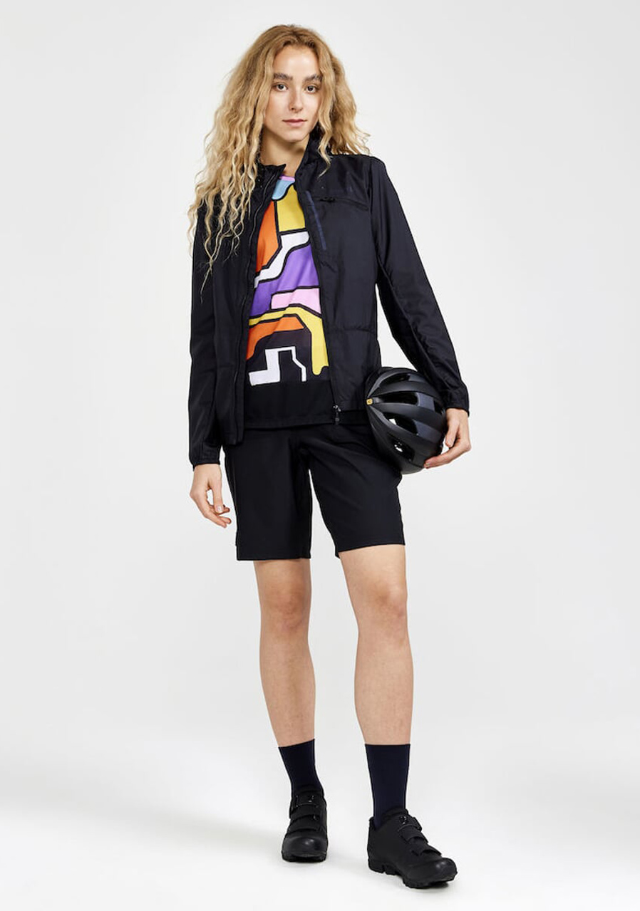 HomeSportySport equipmentCyclingBundy/VestyDámská cyklo bunda Craft 1910582-999000 ADV Offroad Wind W- lehká cyklistická bunda s kapucí CRAFT ADV Offroad Wind odolná proti větru a částečně proti vodě je ideální do nestálého, větrného počasí Materiál: 100% polyester Gramáž: 45 g/m2 - větruodolný materiál s voděodpudivou úpravou - ergonomicky řešený střih odpovídající jezdecké pozici na kole - laserem řezaná otvory pro lepší ventilaci - prodloužený zadní díl zakončen silikonovým ošetřením pro lepší usazení - bundu lze sbalit do kapsy skryté ve švu - 1 náprsní kapsa na zip - reflexní prvky