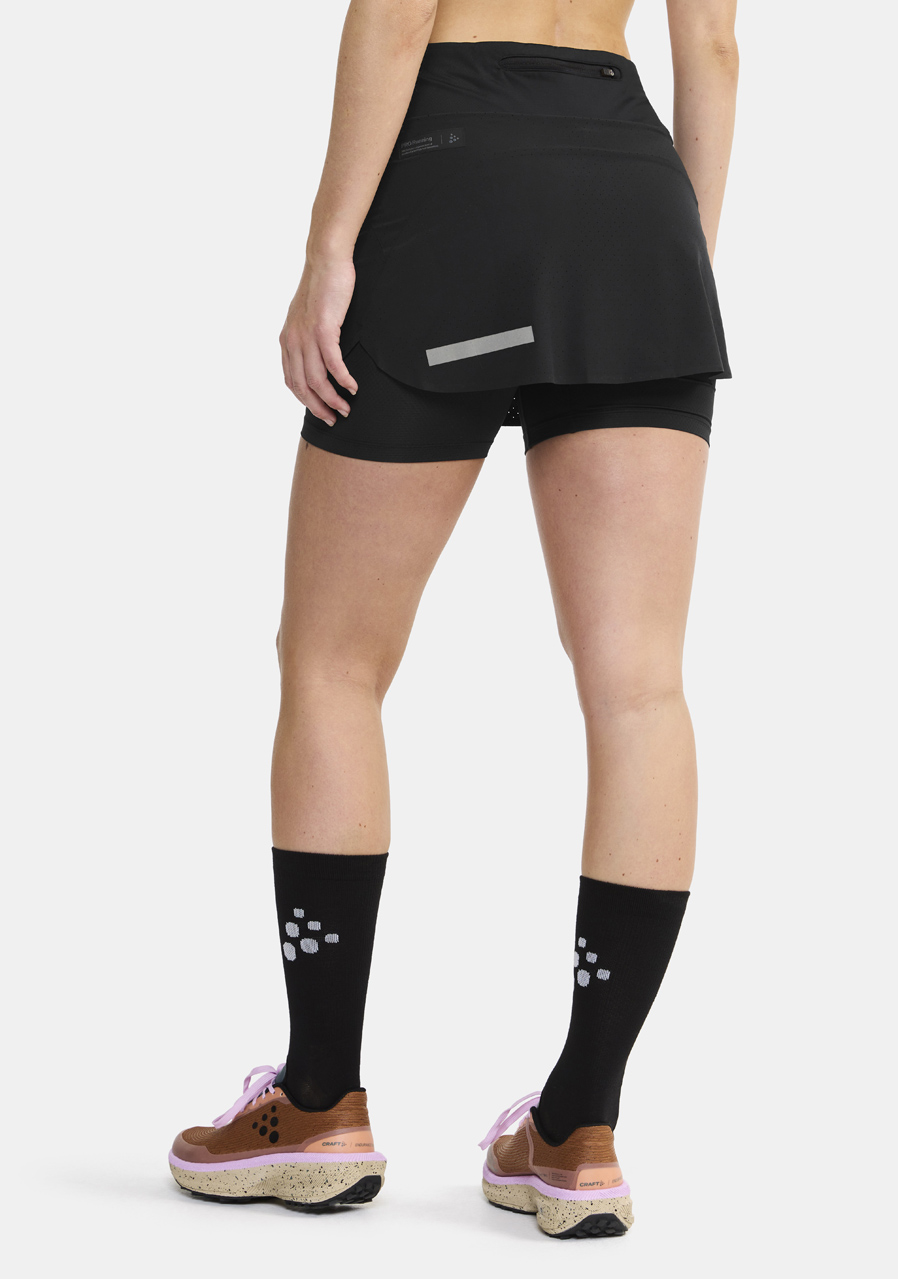 Velmi lehká a prodyšná dámská běžecká sukně CRAFT PRO Hypervent 2 je výbornou variantou i pro horké letní dny. Extrémně lehký a elastický materiál, vysoká prodyšnost, ale také vynikající fit - to jsou hlavní přednosti této sukně. Materiál: svrchní část - 90% recyklovaný polyester, 10% elastan; vnitřní boxerky - 90% recyklovaný polyamid, 10% elastan; pas - 74% polyamid, 26% elastan - velmi lehký tkaný svrchní materiál s gramáží 80 g/m2 - perforace pro optimální komfort a odvod vlhkosti - široký elastický pas s možností stažení šňůrkou - na zadní části kapsa na zip - elastické meshové vnitřní šortky