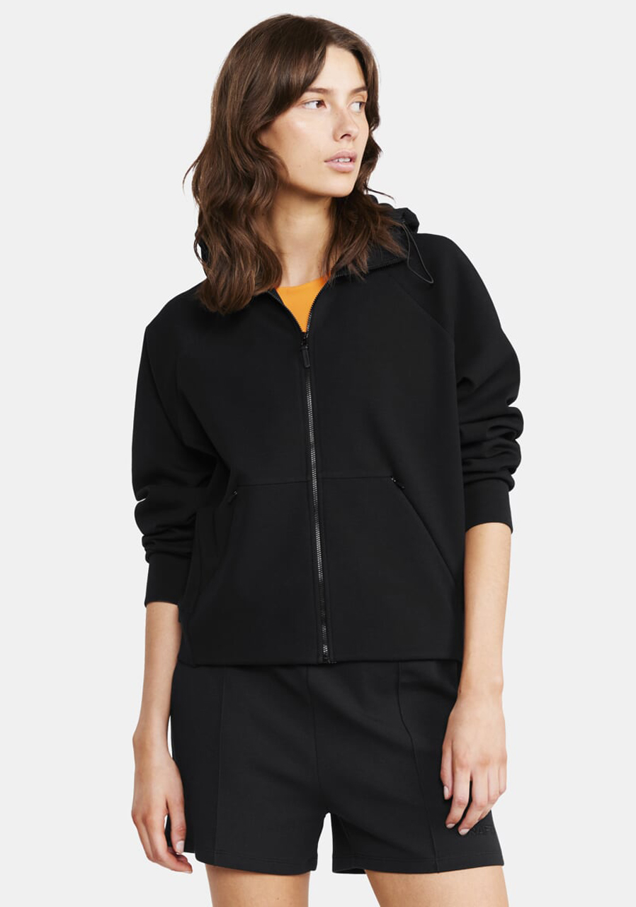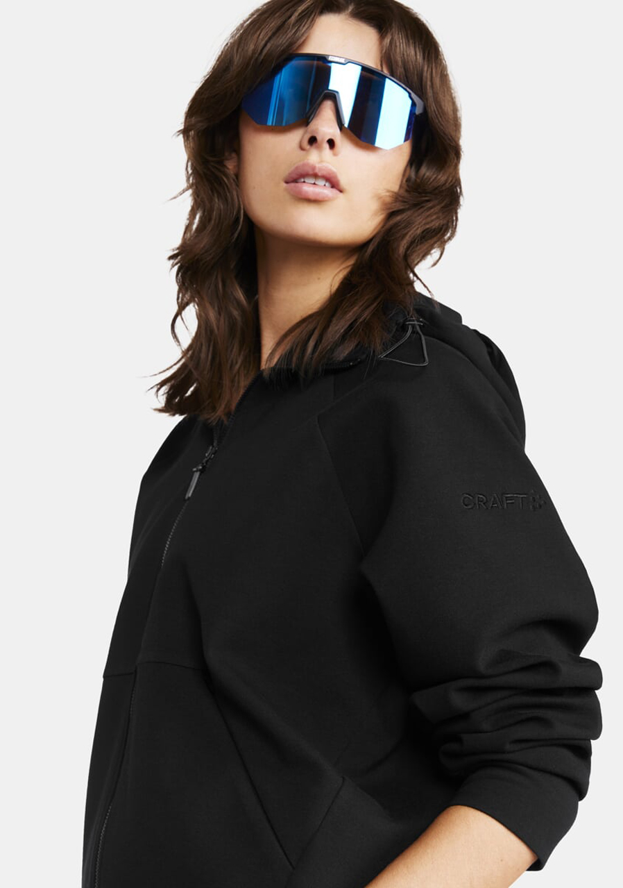 The Craft ADV Join FZ women’s hoodie in elegant black blends sporty performance with urban style. Ideal as a lightweight outer layer for training, casual wear, or travel, it offers exceptional comfort and freedom of movement thanks to its soft fabric and relaxed fit.
