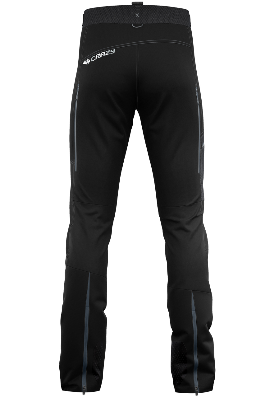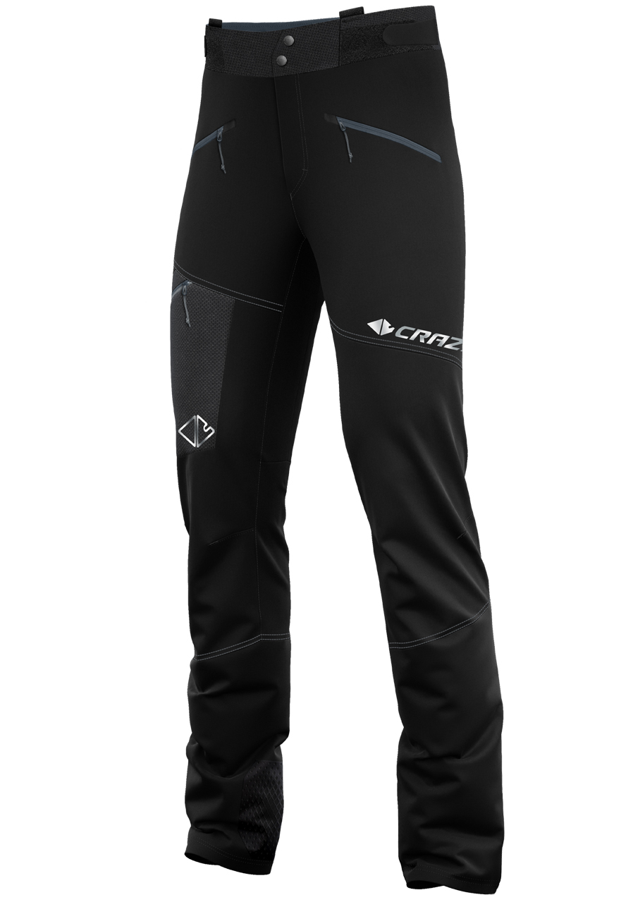 - vodoodpudivé spodní nohavice se skrytým panelem pro regulaci šíře na zip mají gumový lem, který zlepšuje přilnavost ke všem skialpinistickým botám
