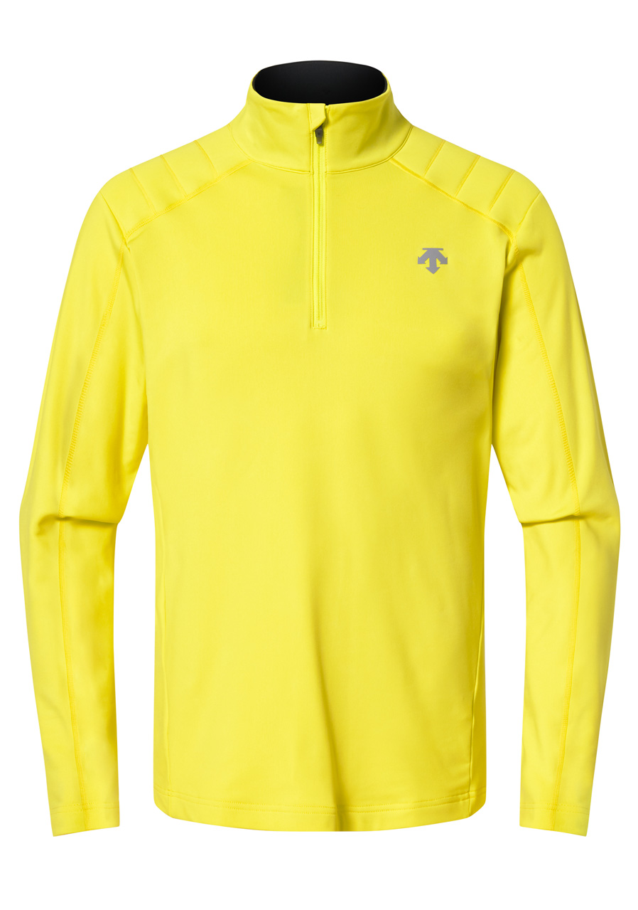 The Descente men's open-neck turtleneck is the perfect choice as the first layer of your ski outfit. The elastic and soft Tricot Velour material with a unique weave provides maximum comfort, effectively wicks away moisture and prevents overheating even during intense activity. The short zipper allows for easy temperature regulation, while decorative retro stitching on the shoulders gives the turtleneck a distinct sporty character. The minimalist Descente logo on the chest underlines the premium look of this technical base layer.