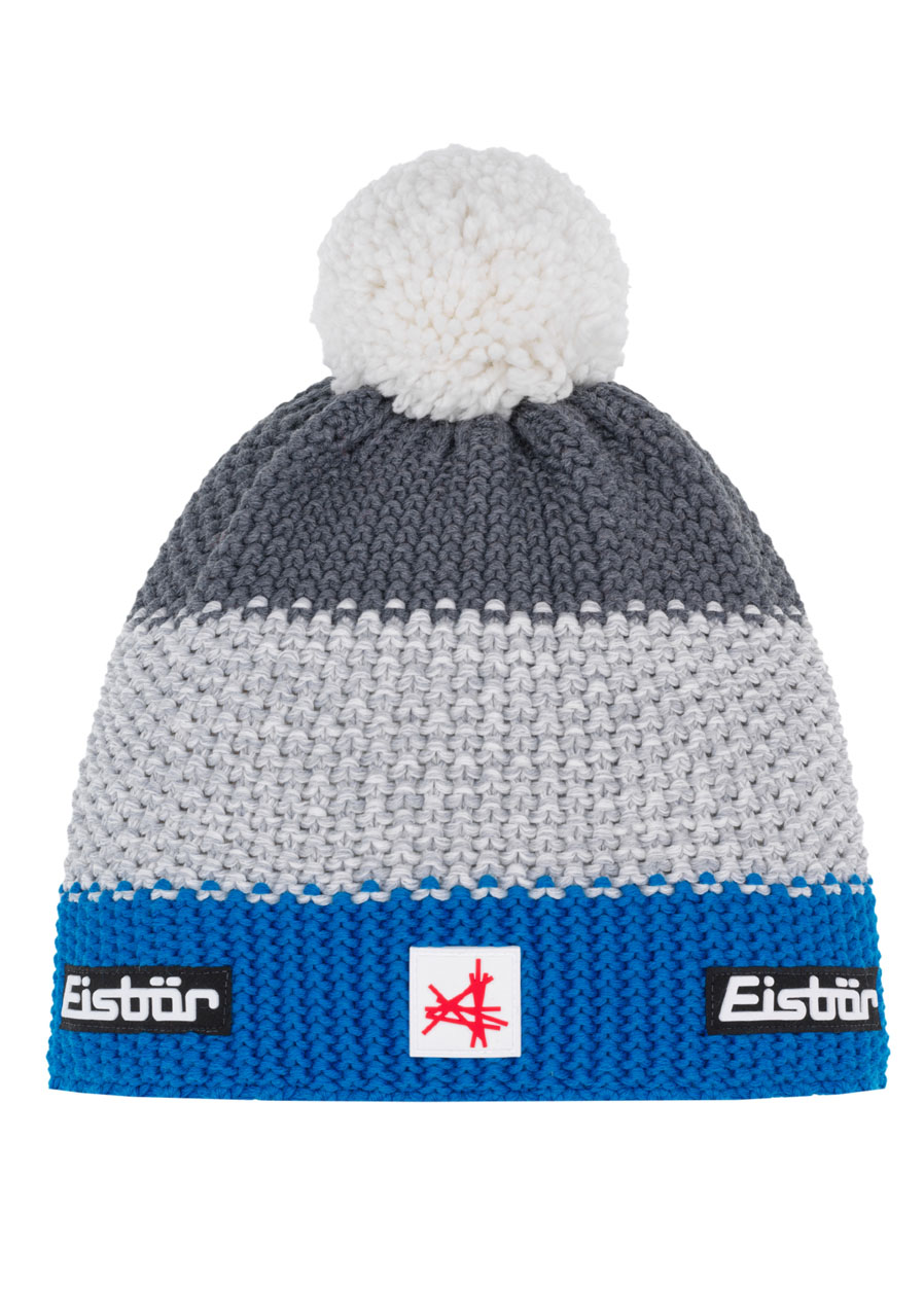 The Eisbär Star Pompon MÜ SA men's winter hat in the color combination of Bugatti, light gray melange and anthracite combines sporty style with functional perfection. The typical striped design, complemented by a distinctive pompom and the iconic Eisbär logo, creates a timeless look that is suitable for both the mountains and the city. The knit made of merino wool and acrylic provides excellent thermal insulation and a pleasant feeling when worn. The inner fleece lining guarantees additional warmth and comfort even on frosty days.