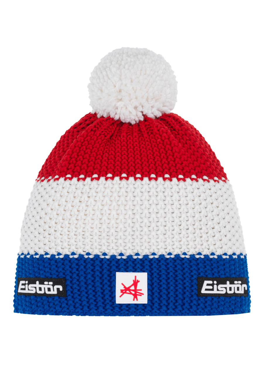 The Eisbär Star Pompon MÜ SA men's winter hat in the attractive Lapis/White/Ketchup combination represents an iconic model of the brand that combines sporty energy with premium quality. The striped design with contrasting colors, a distinctive pompom and the Eisbär logo give the hat a characteristic look that is suitable for both the ski slope and the city. The blend of merino wool and acrylic provides ideal thermal insulation, softness and durability. The inner fleece lining guarantees comfort and protection from wind and cold.
