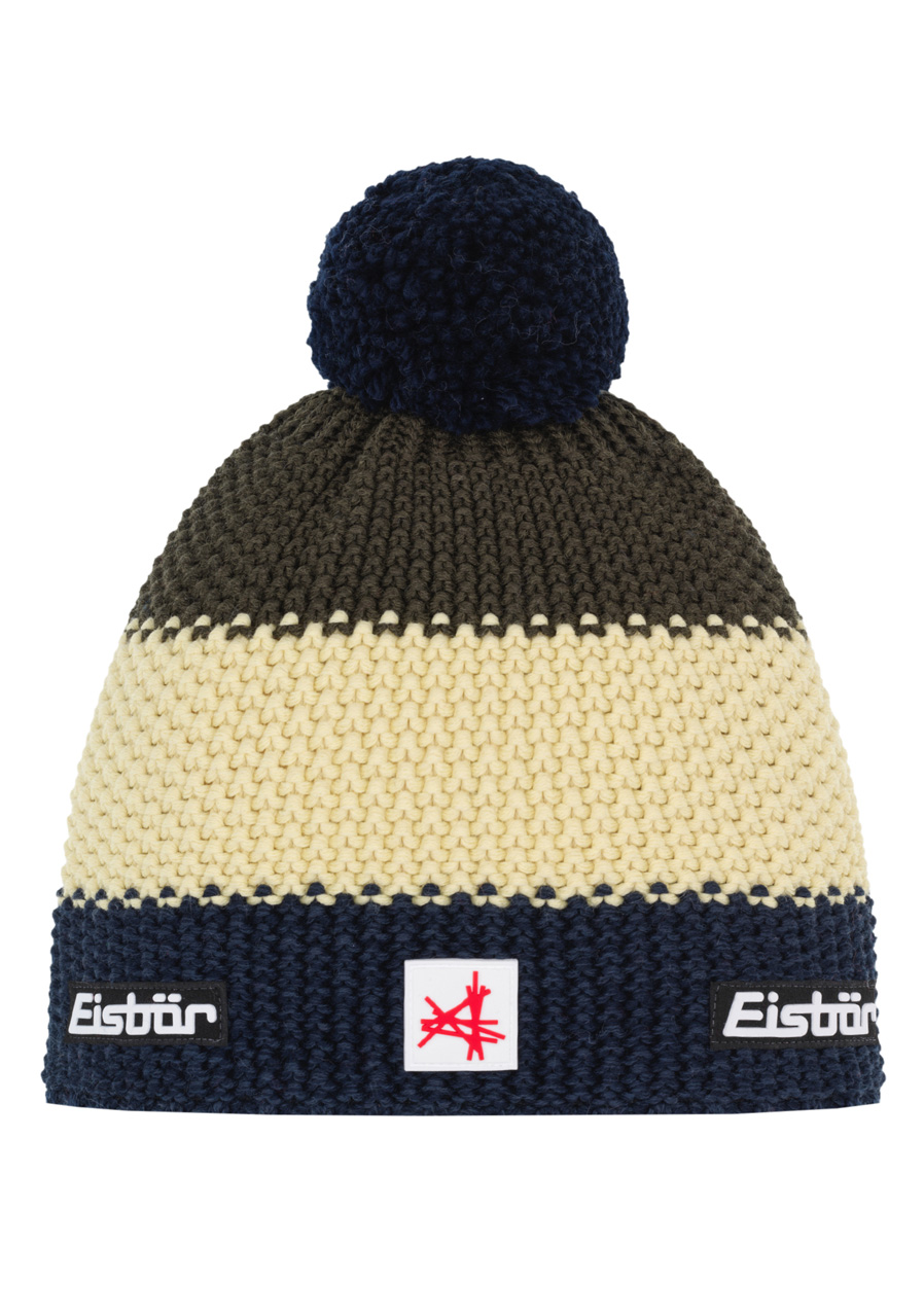 The Eisbär Star Pompon MÜ SA men's winter hat in the color combination Nachtmel, Clear Light and Outdoorgr combines iconic sports style with high functionality. The characteristic striped design with contrasting colors, a distinctive pompom and the Eisbär logo creates a modern, energetic look. The blend of merino wool and acrylic provides excellent thermal insulation, softness and durability, while the inner fleece lining ensures comfort and protection against the cold. The ideal hat for winter sports activities and leisure.