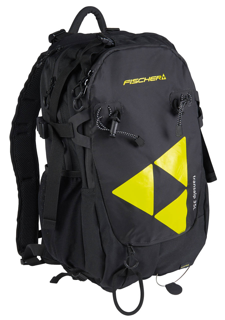 Features Ski touring backpack with durable construction and ventilated back system Front and top access to main compartment Separate avalanche safety gear pocket Side and diagonal ski carry options Ice axe and pole attachment Helmet holder net included Hydration bladder sleeve (up to 2 L) Padded back panel with airflow channels Hip belt with gear loop and zip pocket Sternum strap with emergency whistle Reflective details