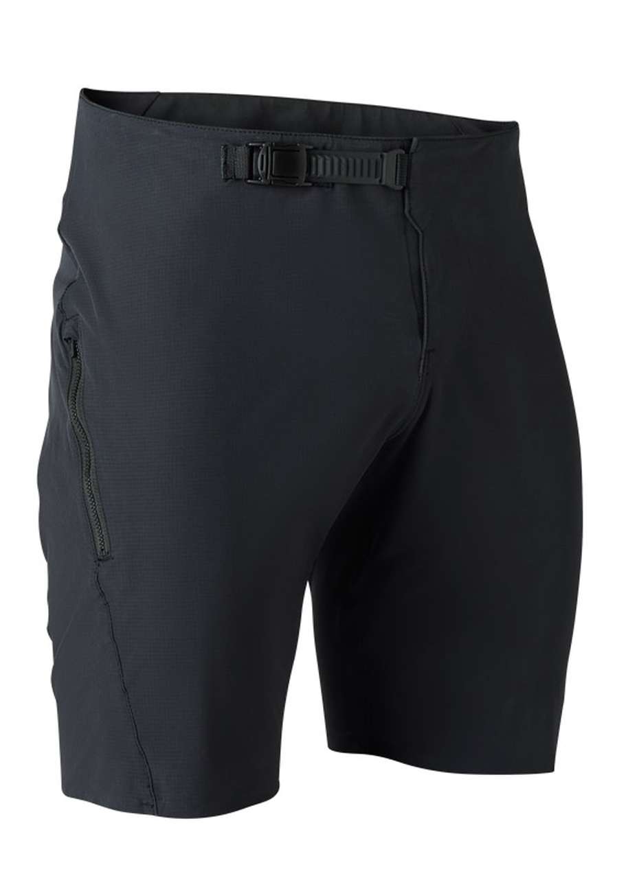 Men's cycling shorts from the legendary brand Fox made from unique Flexair yarn. Flexair material is 25% lighter than regular polyester, offering excellent elasticity and moving naturally with the rider’s movements. Thanks to the Tru-Dri construction, the fabric feels very comfortable against the skin and efficiently wicks away sweat and moisture. Strategically placed perforations ensure better ventilation. Waist adjustment with a plastic strap provides a comfortable fit. Low-profile side zip pockets offer practical storage for small items. Bonded lower hems increase comfort. The DWR water-repellent finish protects against moisture and dirt.
