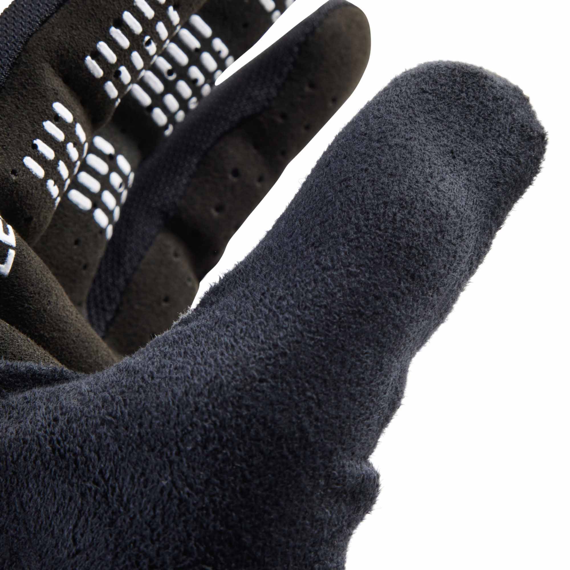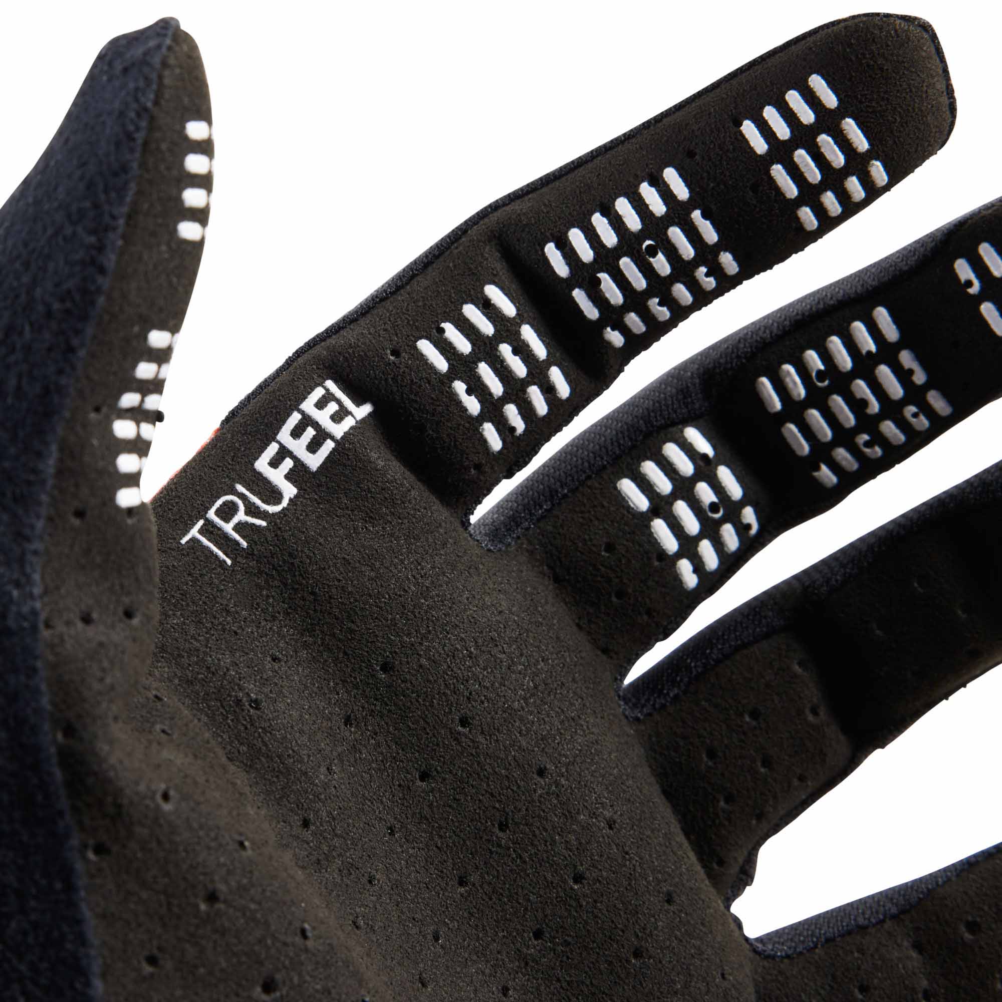 The Fox Flexair Race Glove is a lightweight and minimalist design focused on pure performance. TruFeel technology features silicone texture inside the fingertips for enhanced feel and control. The durable Clarino® palm provides long-lasting protection while maintaining close contact with the handlebars. An elastic wrist cuff ensures a secure and snug fit without bulk. Touchscreen compatibility allows you to use devices without removing the gloves. Material composition: 70% nylon, 16% polyurethane, 7% polyester, 7% elastane