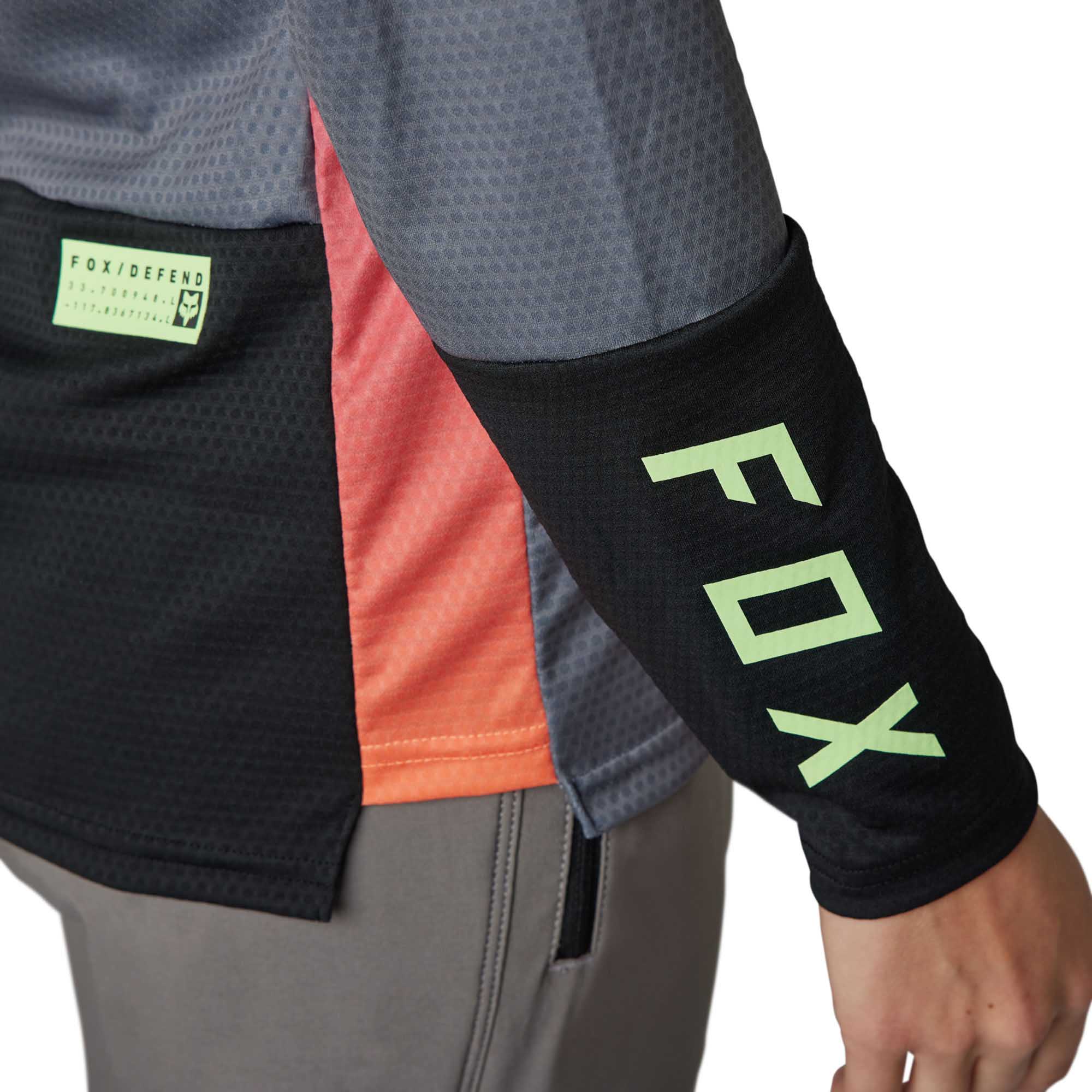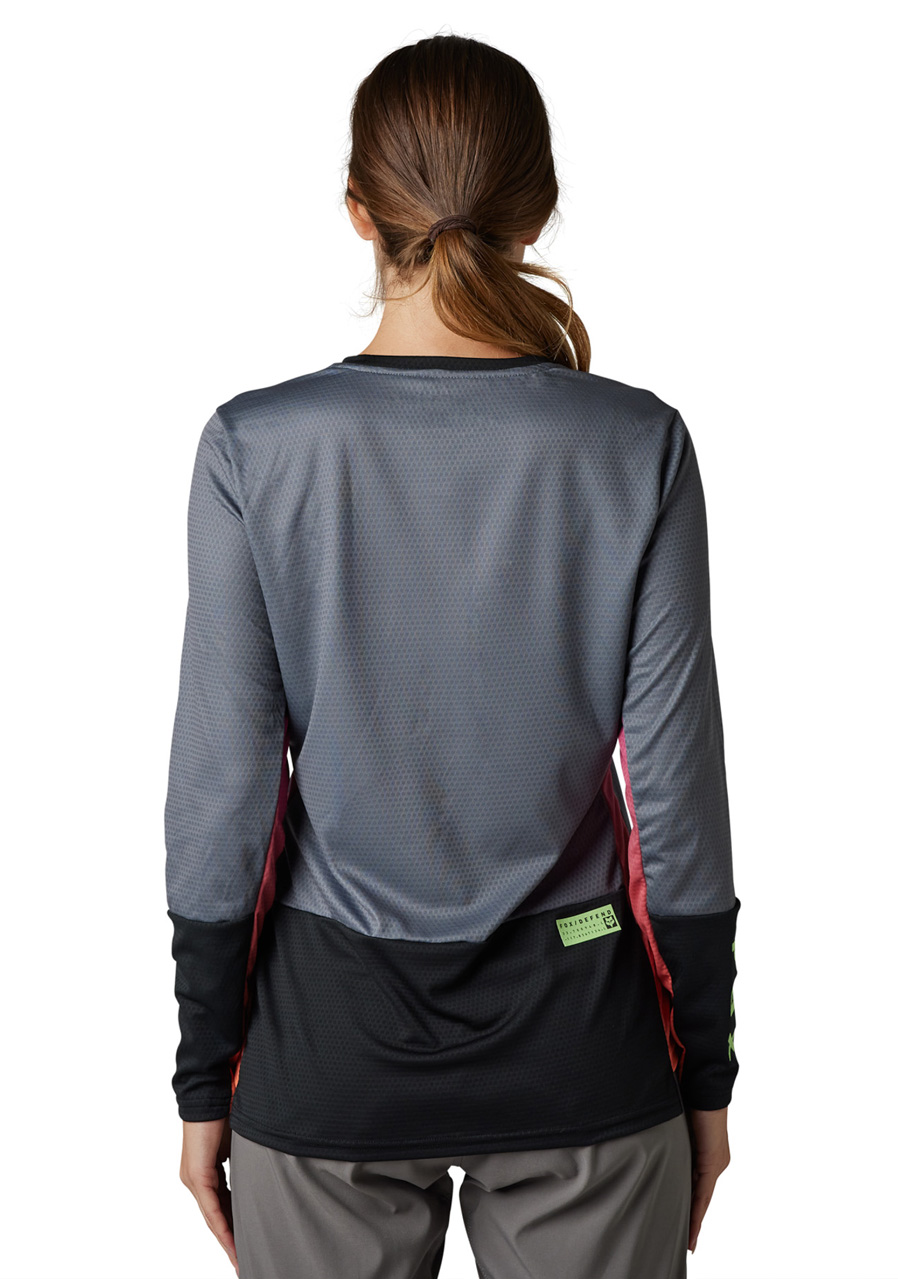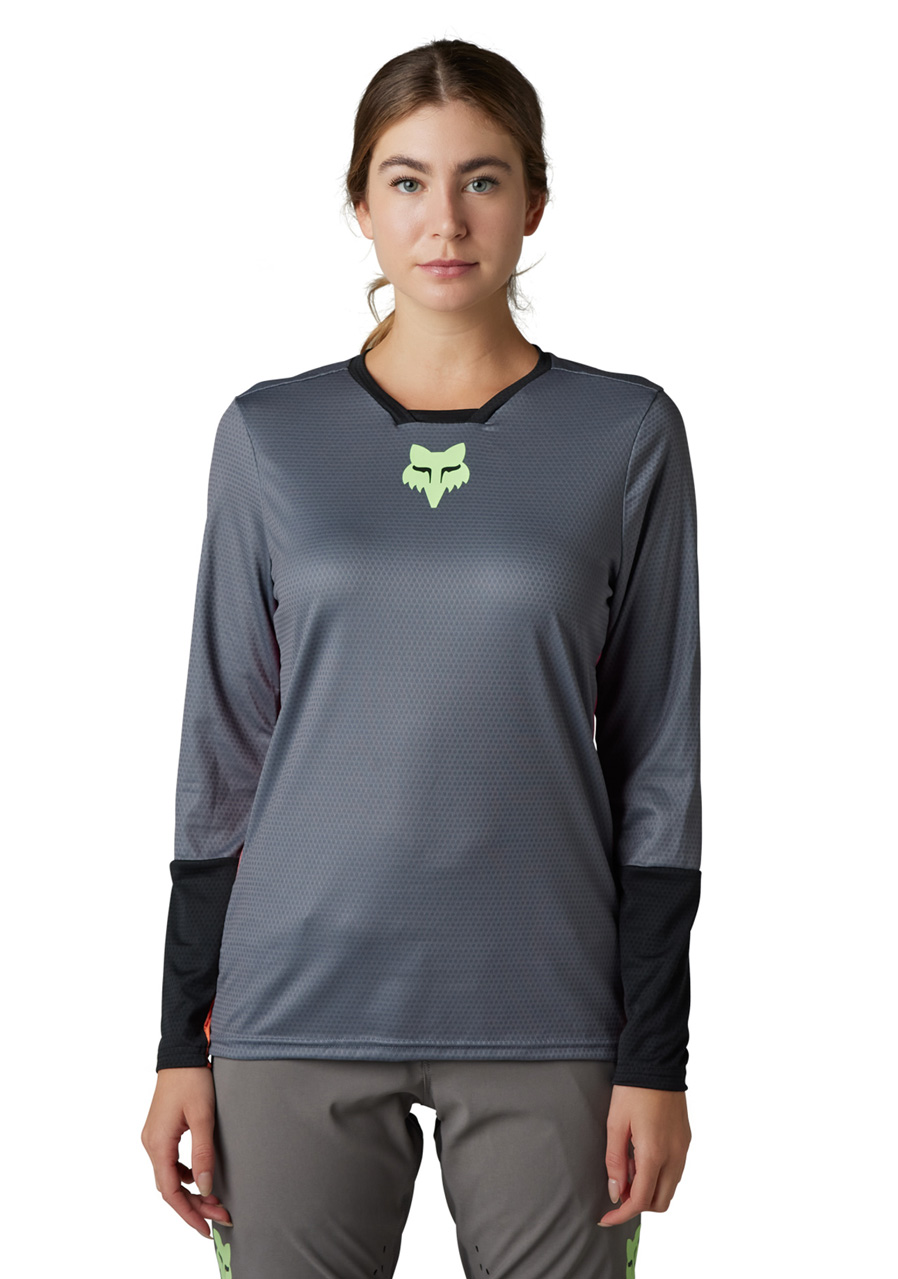 A technically advanced women’s long-sleeve cycling jersey designed for demanding enduro and trail riders who need a combination of durability, comfort and performance during extended rides in variable conditions Material: 100% polyester Technology: TruDri® – fast-drying fabric that efficiently wicks sweat away from the body to keep you dry and comfortable Fit: ergonomically shaped for the female silhouette, offering freedom of movement without excess fabric Features: abrasion- and dirt-resistant construction, ideal for rugged terrain, aggressive riding and challenging trails Protection: long sleeves provide extra coverage from wind, sun and mild chill, suited for long days in the saddle Ventilation: strategically placed mesh panels improve airflow exactly where it's needed most Comfort: soft collar and sleeve edges enhance comfort against the skin Stability: silicone print at the lower hem prevents the jersey from riding up during active movement Design: modern Pewter grey finish with contrasting race-inspired accents Ideal for: ambitious female riders taking on technical trails, enduro races and long alpine adventures in unpredictable weather