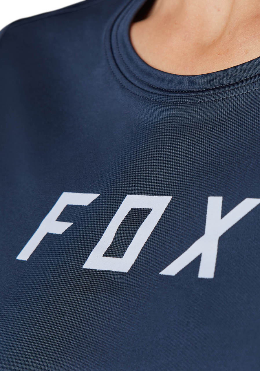 Comfort-focused women’s short-sleeve jersey designed for trail and everyday rides. Material: 100% recycled polyester Technology: TruDri® fabric wicks moisture efficiently and dries quickly under pressure Fit: female-specific cut tailored for comfort and freedom on the bike Features: lightweight, breathable, sustainably made from recycled fibers Design: Moth Midnight color scheme with subtle styling that fits seamlessly with the Fox range Ideal for: trail riding, MTB, casual cycling and warm-weather adventures