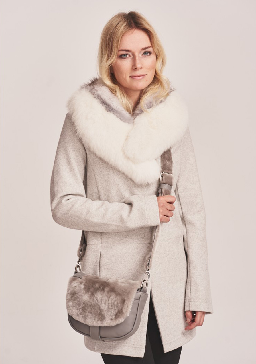 Luxury shearling waist bag in an elegant grey finish