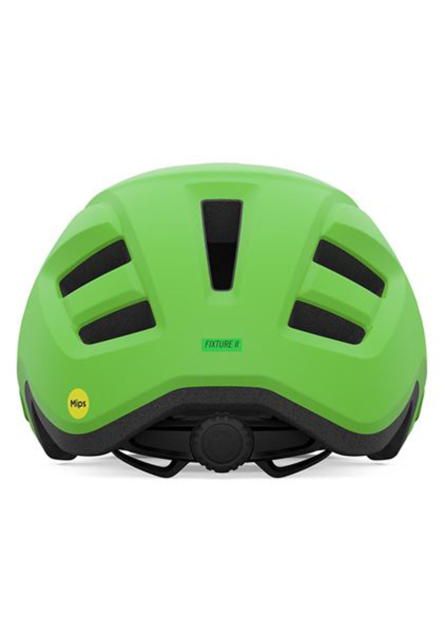 The Giro Fixture II MIPS Youth cycling helmet in matte bright green provides advanced protection and comfort for young riders. It features MIPS (Multi-Directional Impact Protection System) technology, which helps reduce rotational forces on the head during impacts. The ergonomic shape and lightweight design ensure maximum comfort during any ride, while the extended rear profile offers better coverage for the back of the head.