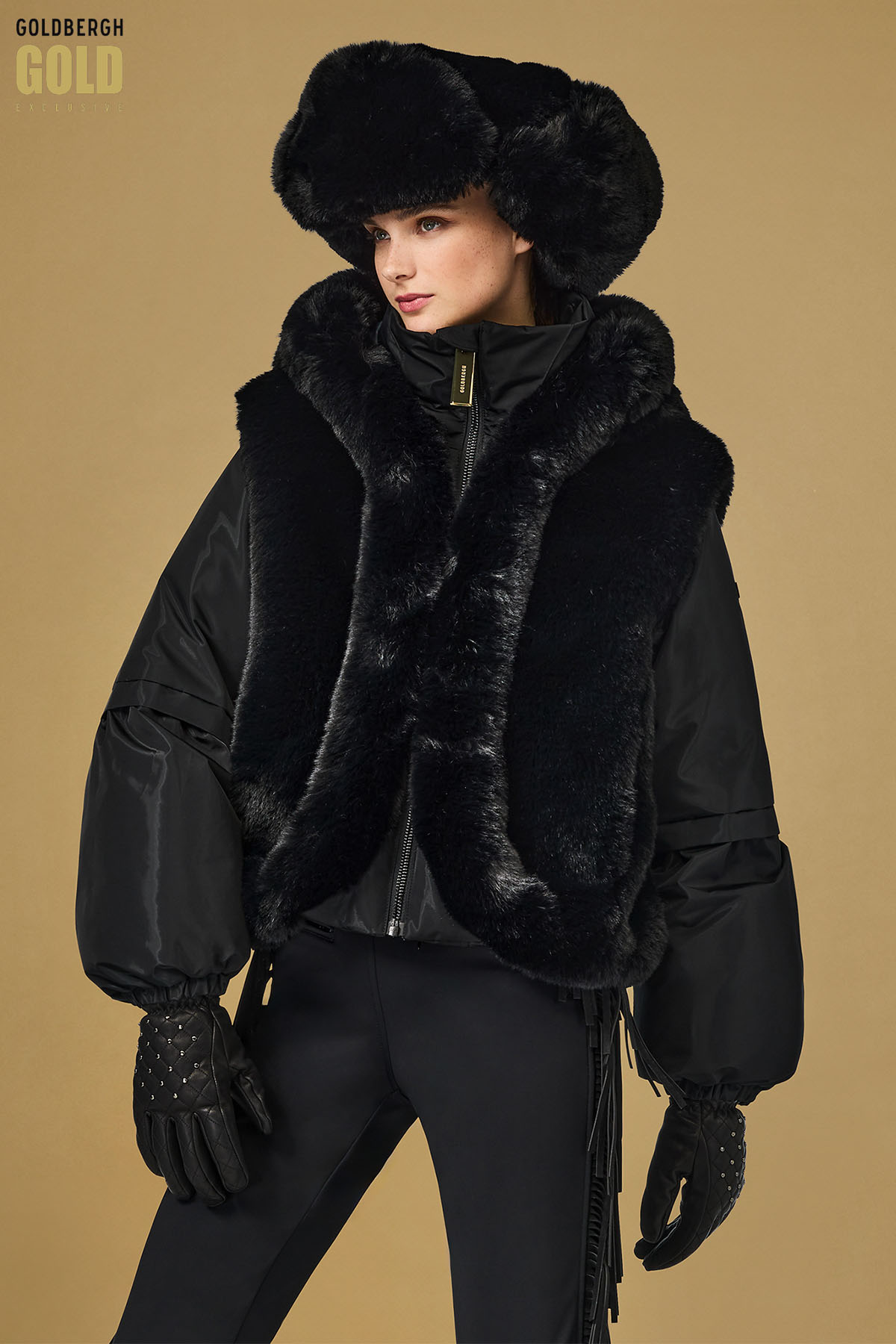 This women’s jacket in a loose fit combines comfort with high functionality. The combination of RDS-certified goose down and Primaloft insulation ensures optimal warmth during winter activities. A fixed hood and a detachable snowcatcher protect against snow, while practical pockets include two outer, two inner, and a sleeve pocket for a ski pass. Knitted cuffs inside the sleeves and an integrated carry strap enhance comfort and convenience.