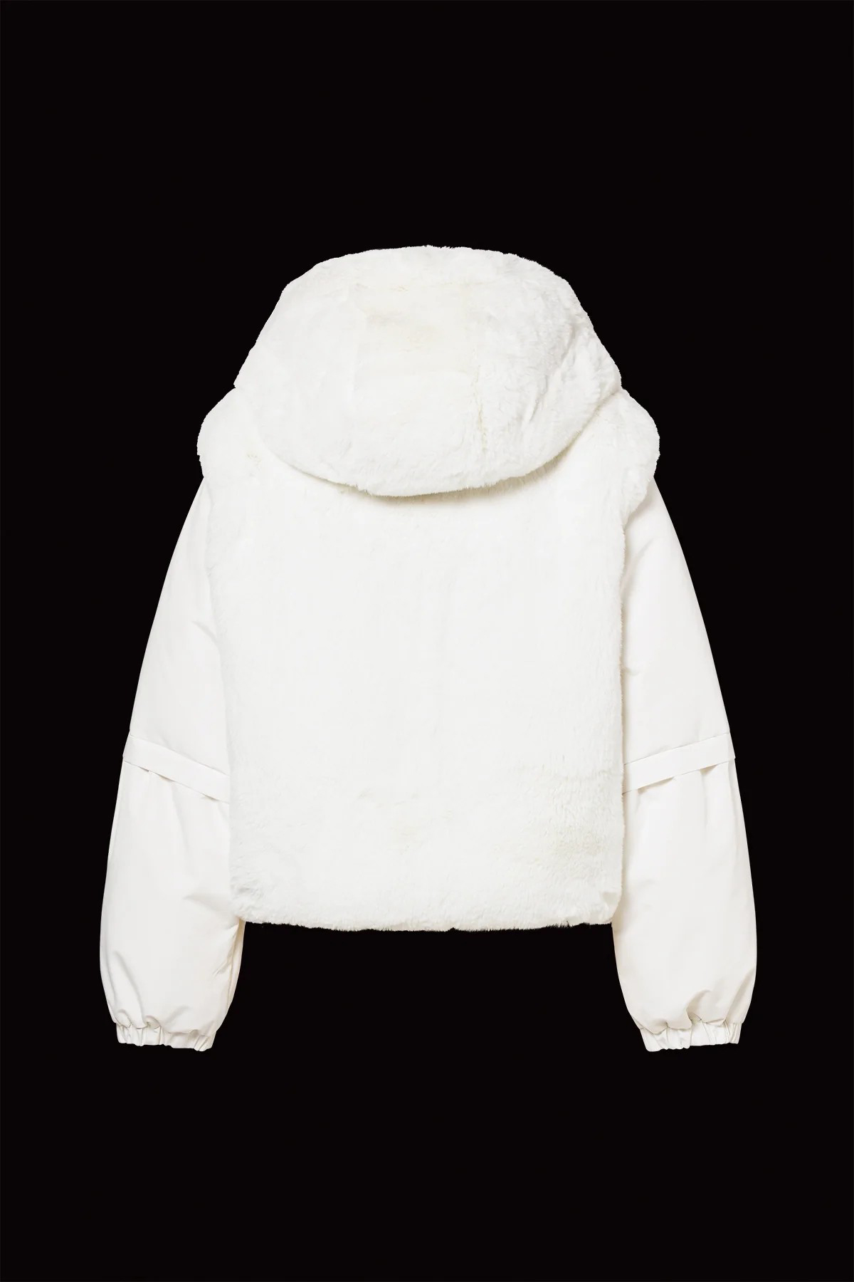 Parameters: Fit: Loose fit Outer material I: 100% polyester Outer material II: 100% polyester Lining: 58% polyester, 42% recycled polyester, with anti-odor finish Filling I: 90/10 goose down (90% feathers, 10% down) – RDS certified Filling II: 100% polyester Primaloft Hood: Fixed Details: Detachable snowcatcher, 2 outer pockets, 2 inner pockets, sleeve pocket for ski pass, knitted cuffs inside sleeves, integrated carry strap Length: 56 cm (center back, size 38)