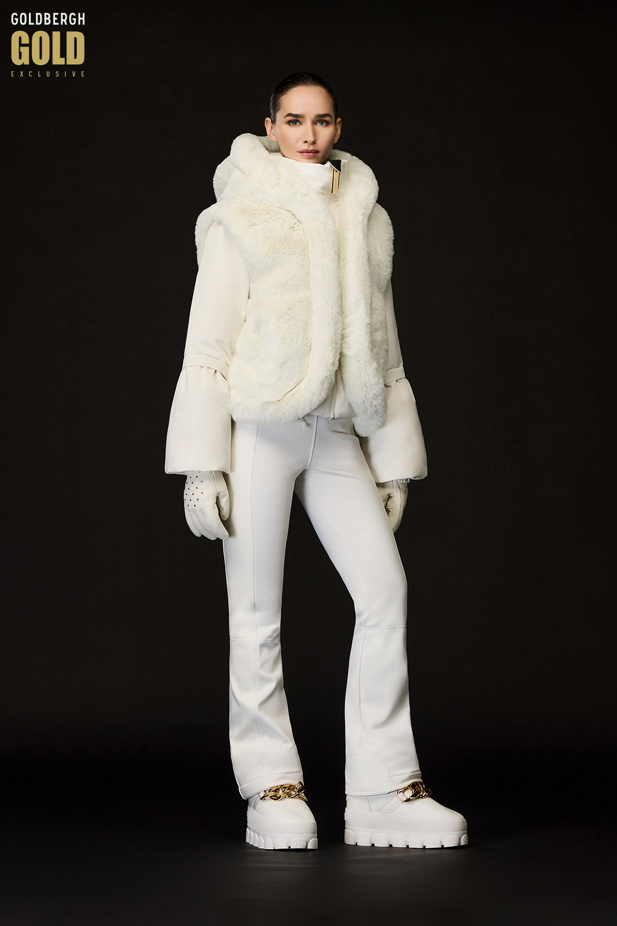 This women’s jacket in a loose fit combines comfort with high functionality. The combination of RDS-certified goose down and Primaloft insulation ensures optimal warmth during winter activities. A fixed hood and a detachable snowcatcher protect against snow, while practical pockets include two outer, two inner, and a sleeve pocket for a ski pass. Knitted cuffs inside the sleeves and an integrated carry strap enhance comfort and convenience.