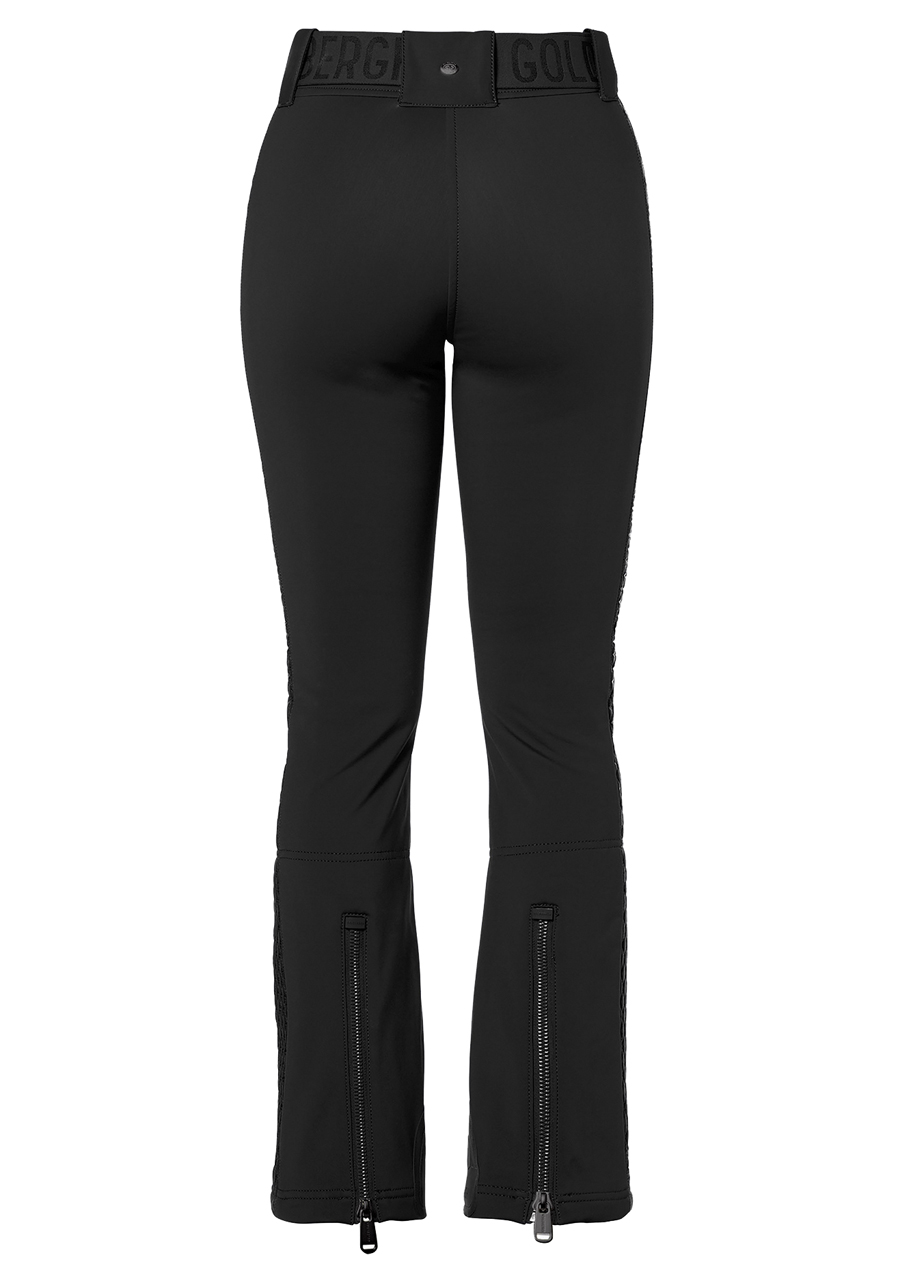 These women’s ski pants in a slim fit cut combine a modern look with practical details. Two zippered pockets provide secure space for small essentials, while the elastic waistband ensures a comfortable fit. Zippers at the back of the legs make it easy to slip the pants over boots. The hem is equipped with a snow gaiter to protect against snow entry, and the side seams are decorated with subtle smocking. The pants have a standard fit, so you can choose your usual size.