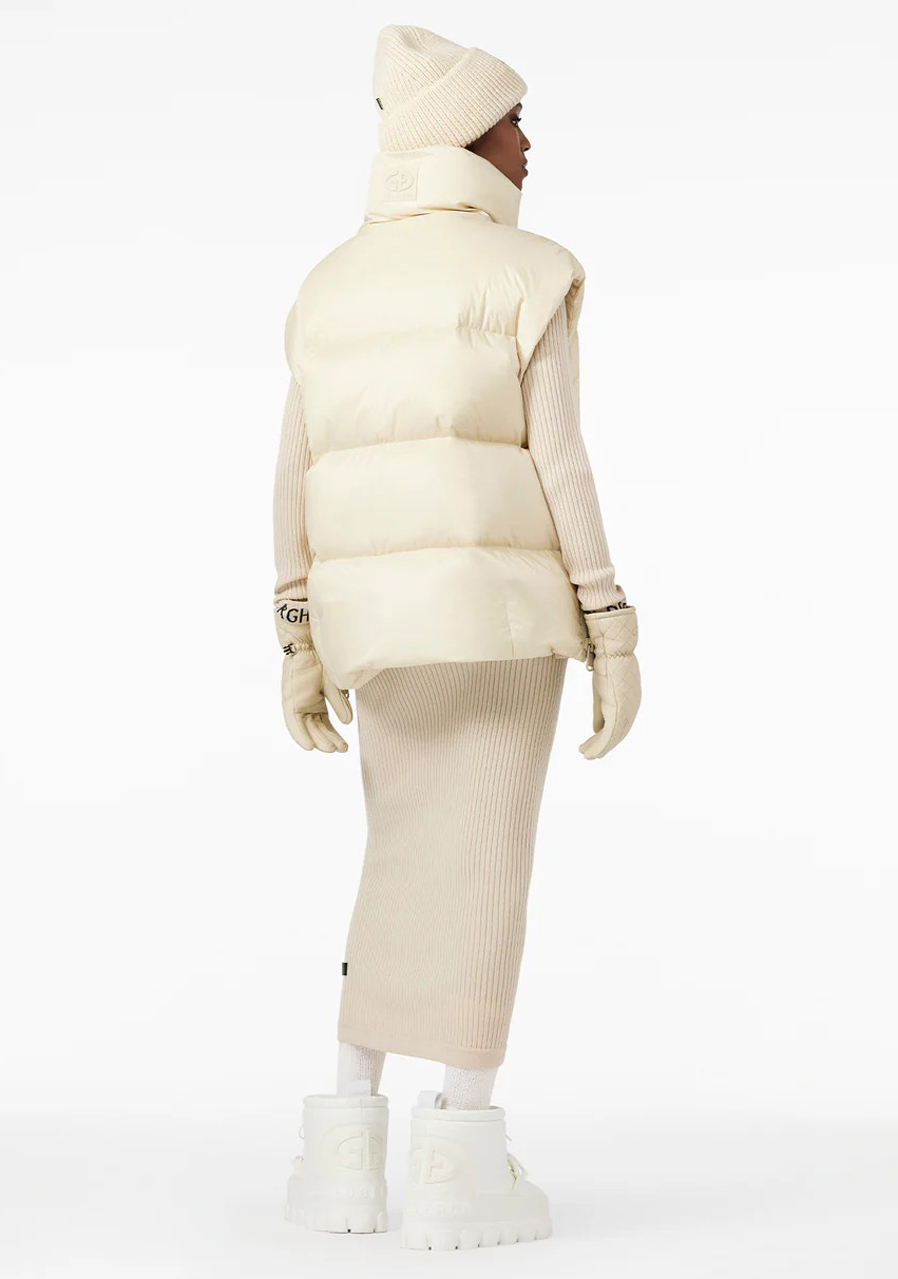 The Goldbergh Cache Bodywarmer in champagne is an elegant and functional women’s vest, ideal for winter outdoor activities such as skiing or everyday wear in cold weather. Designed with comfort and protection from the elements in mind, the vest features an oversized cut for easy layering. It includes an asymmetrical zipper, two exterior pockets, and two interior pockets for practical storage. Additionally, it is equipped with a removable snow belt and internal shoulder straps for easy carrying. This stylish vest is a perfect choice for those seeking a combination of fashionable design and high functionality.