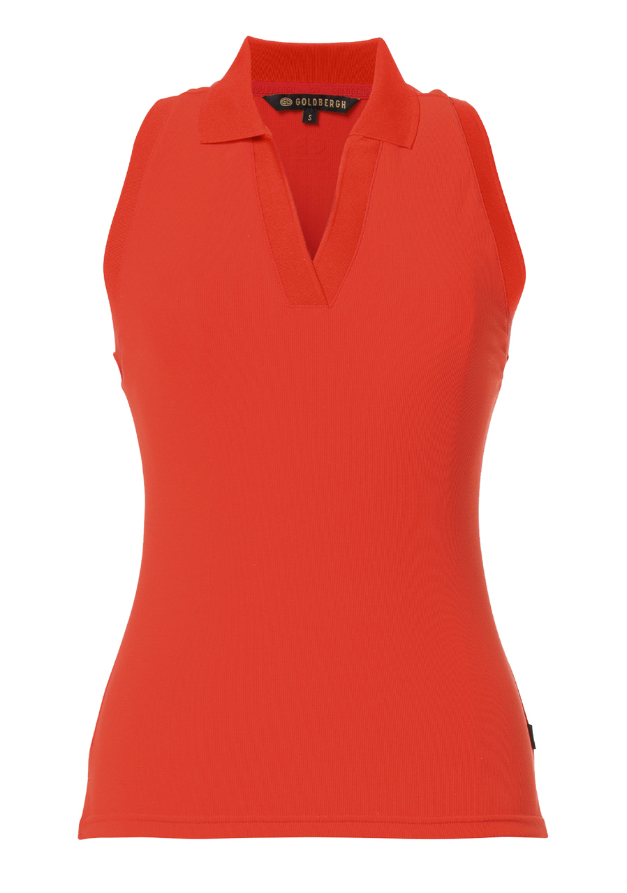 Women's tank top Goldbergh Caroline is a combination of sporty elegance with perfectly refined details. The fitted cut will highlight your feminine silhouette and the pleasant material will provide flexibility and comfort during any movement. The tank top has a V-neck with a collar, which gives it a timeless look. It is also a great choice for sports. This piece of clothing is suitable for complementing everyday outfits and for active days on the court.