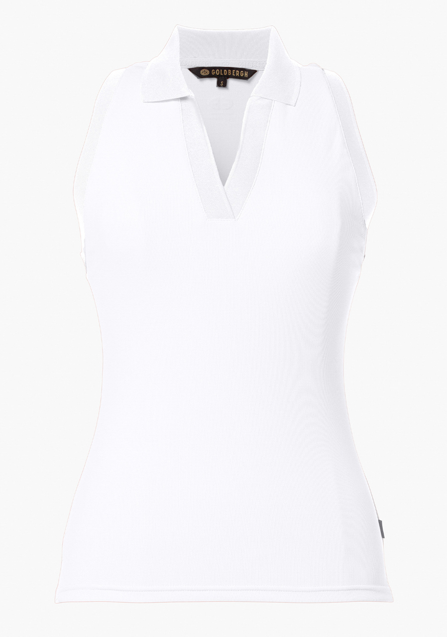 The Goldbergh Caroline women's tank top combines sporty elegance with perfectly crafted details. The slim fit accentuates your feminine silhouette, and the comfortable material offers flexibility and comfort during any movement. The tank top features a V-neck with a collar, giving it a timeless look. It’s also a great choice for sports. This piece is perfect for complementing your everyday outfit as well as for active days on the court.