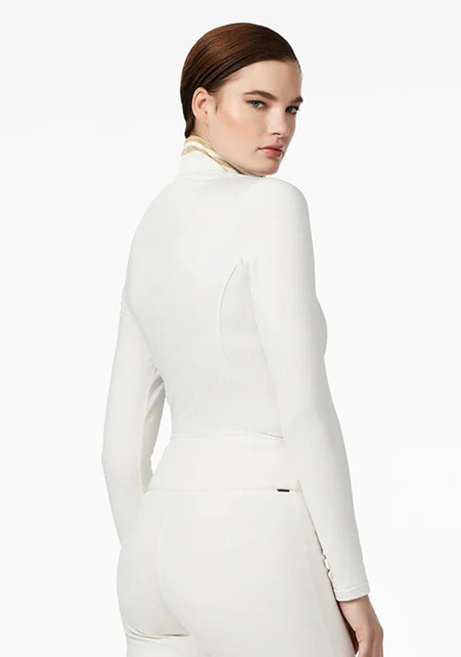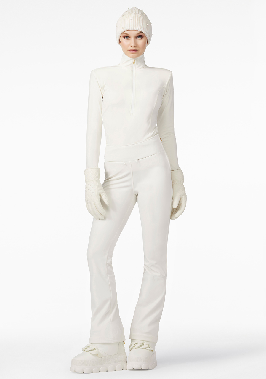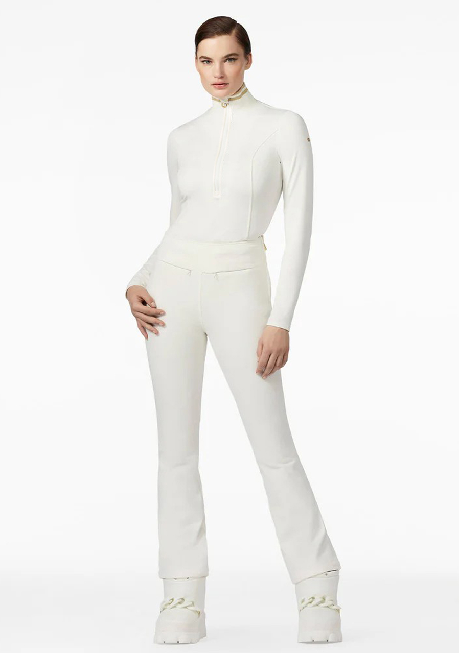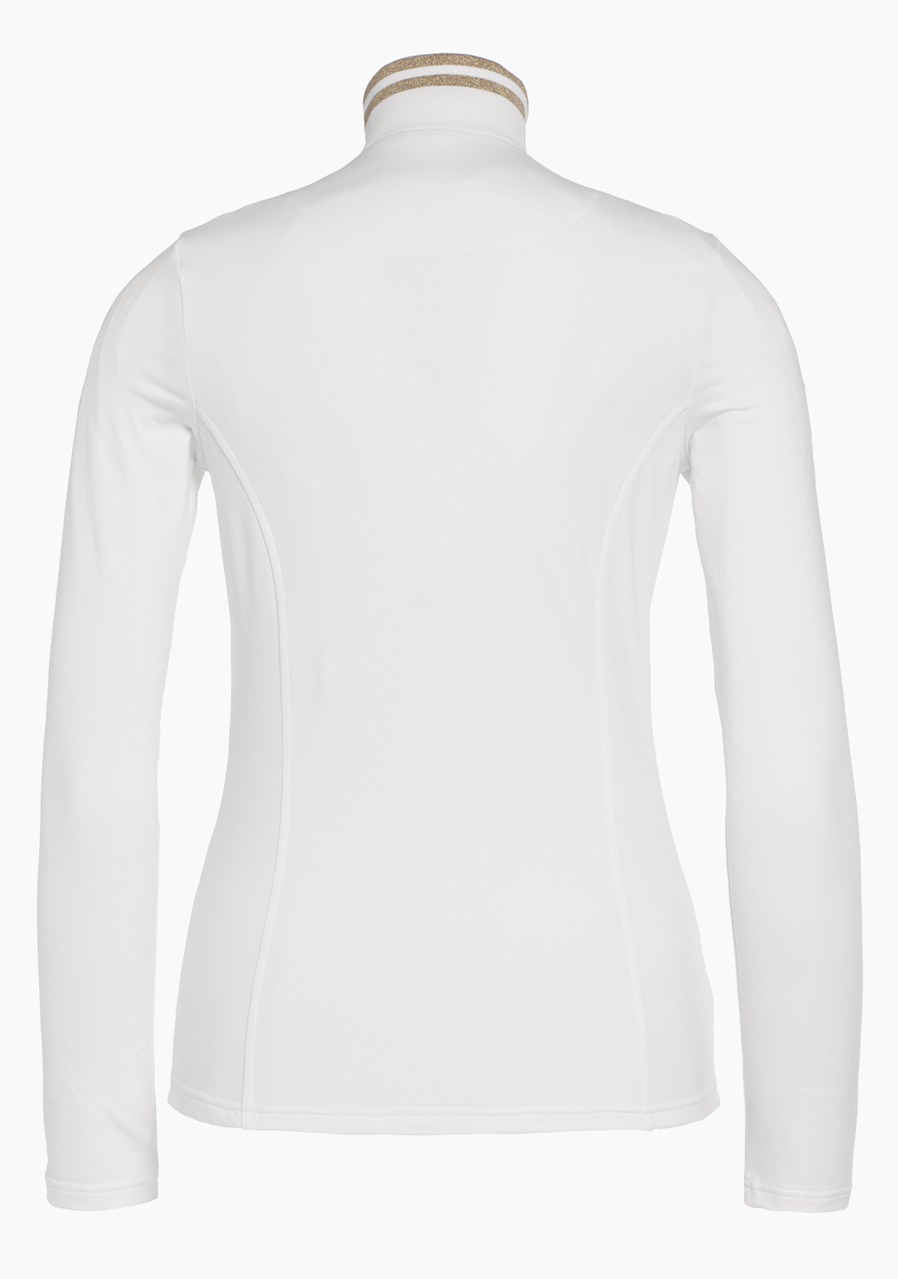 The Goldbergh Diane Ski Pully in Cream is an elegant and functional women’s ski pullover that perfectly combines style and performance. Made from high-quality fabric with a brushed inner finish, it offers excellent comfort and keeps the body warm even during demanding winter activities. This slim-fit model features a high collar with lurex detailing and a zip at the neck for better temperature regulation. The material is stretchy, quick-drying, and effectively wicks away moisture – ideal for high-intensity sports. This pully is not only practical but also a stylish choice for women who want to look good and feel comfortable on the slopes. Perfect for active women who don’t want to compromise between fashion and functionality.