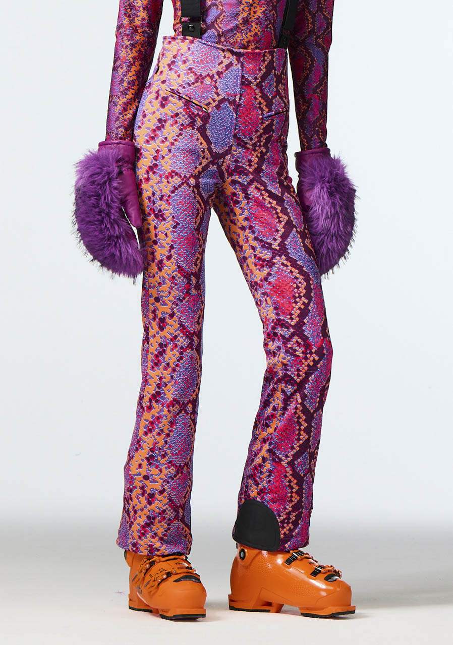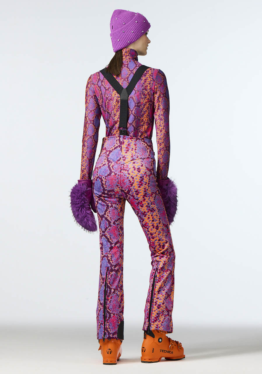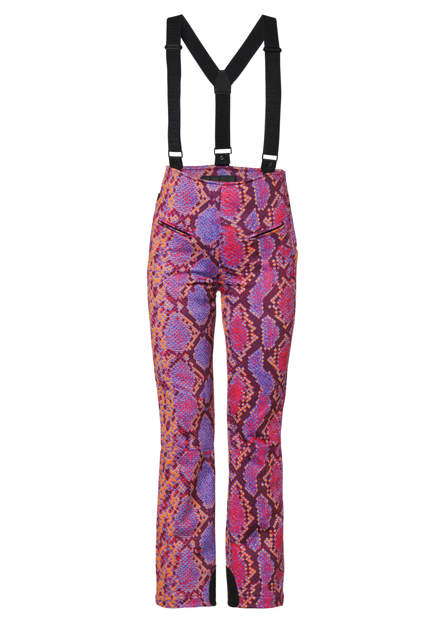 These slim fit pants are designed for maximum comfort and protection during winter sports. They feature two practical pockets and two zippers on the legs for easy dressing. Removable suspenders ensure stable and comfortable wear, while snow gaiters at the hem prevent snow from entering the pants. We recommend choosing your regular size for this model.