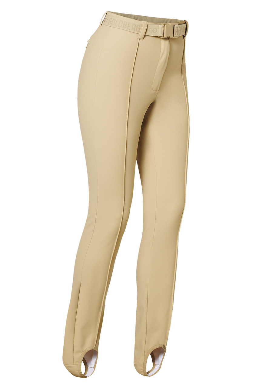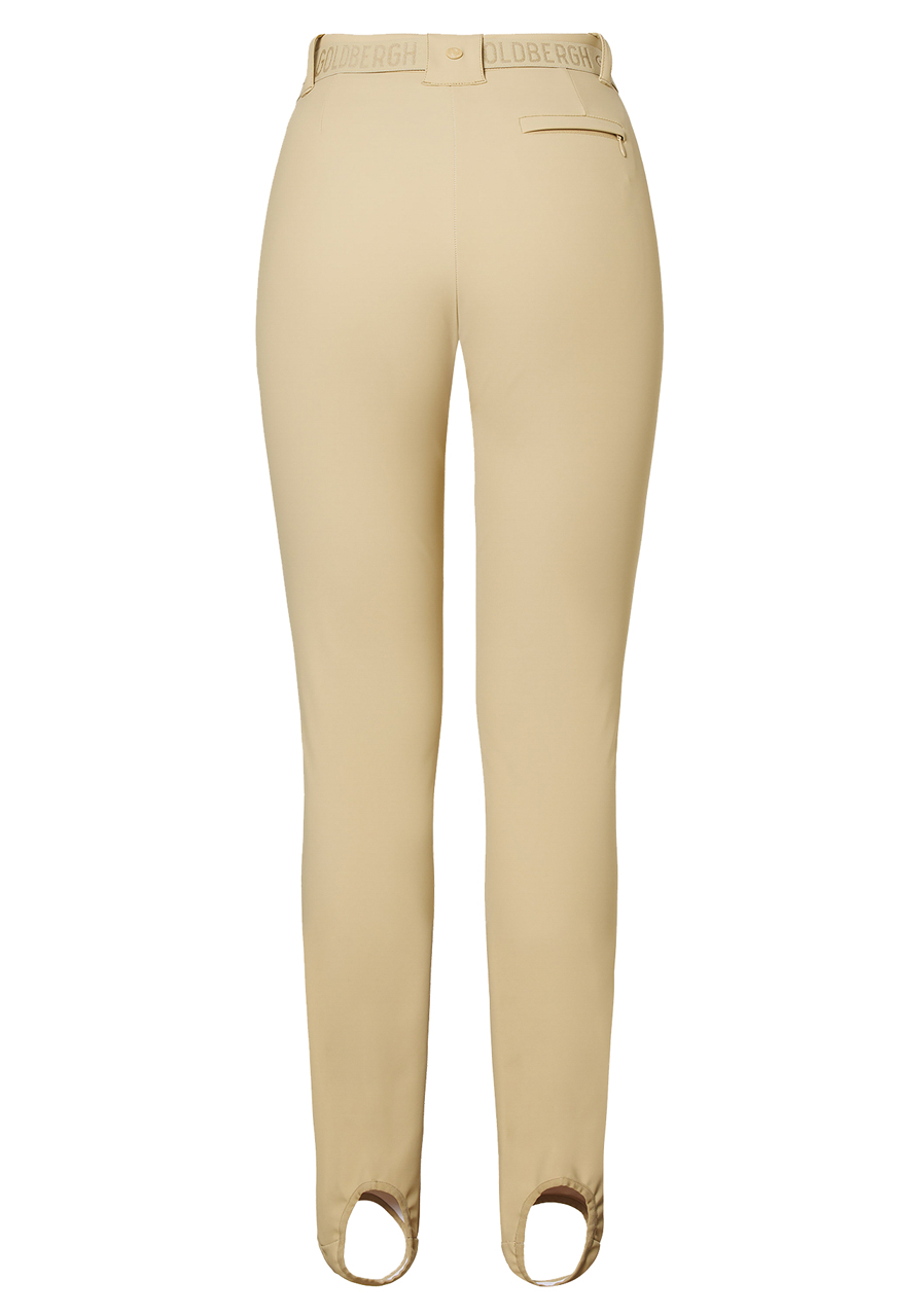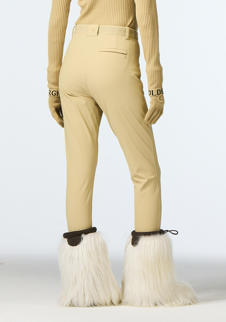 These elegant slim fit trousers combine modern design with practical details. They feature an elastic waistband for comfortable wear and a zip pocket at the back for small essentials. Stirrup cuffs at the bottom hems ensure the pants stay securely in place. The fabric is water-resistant and breathable, making them ideal for various outdoor activities. We recommend choosing your regular size.