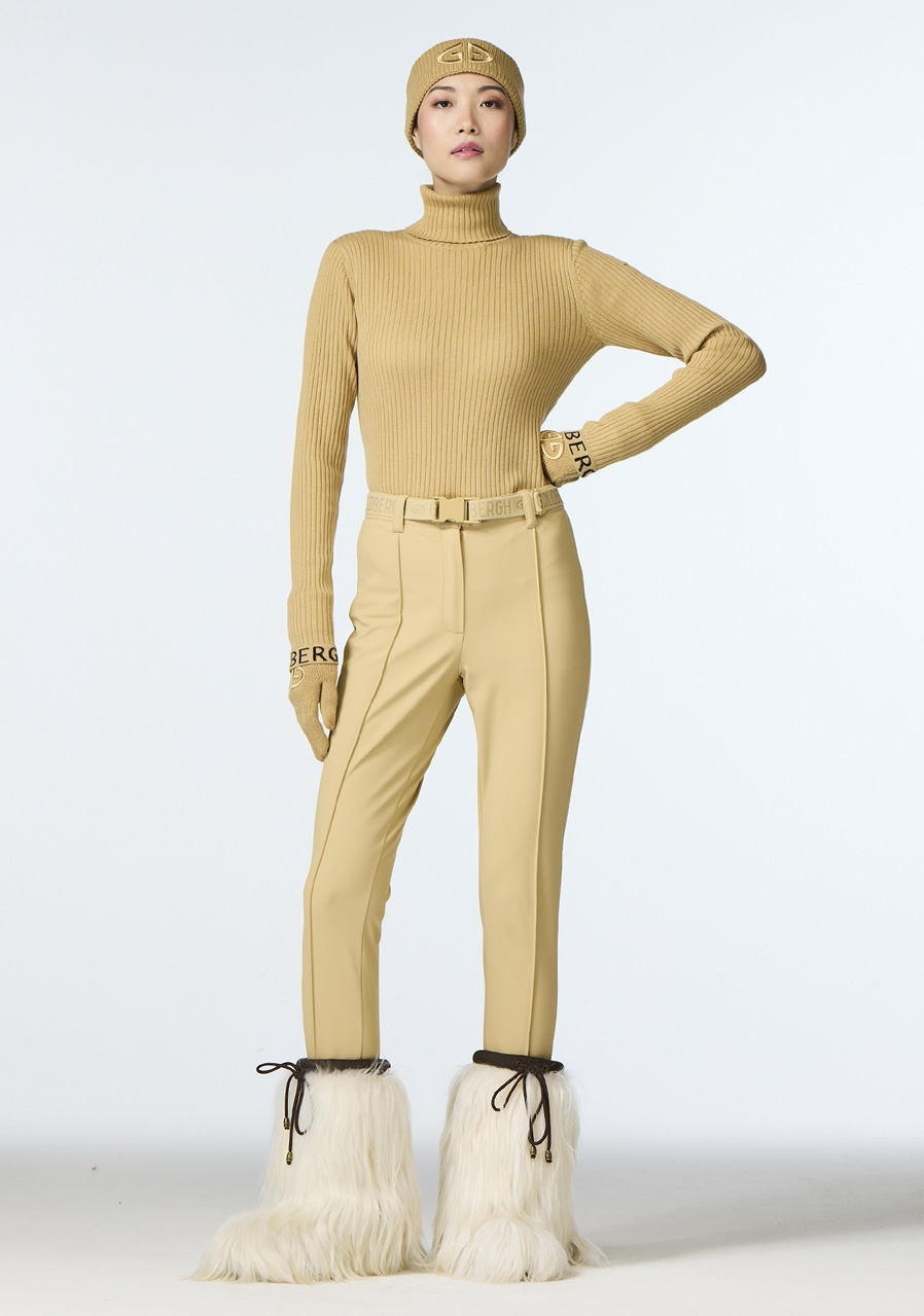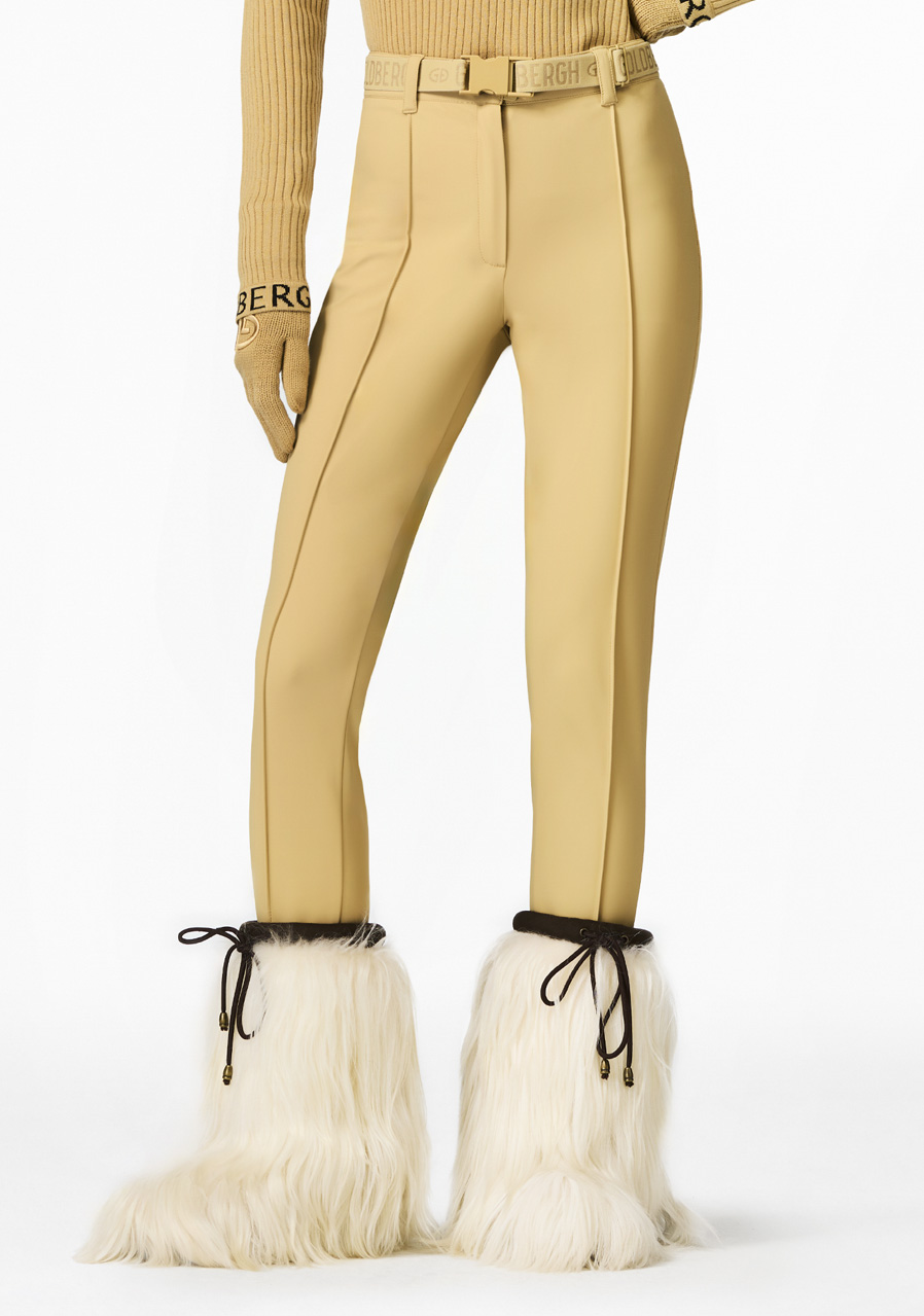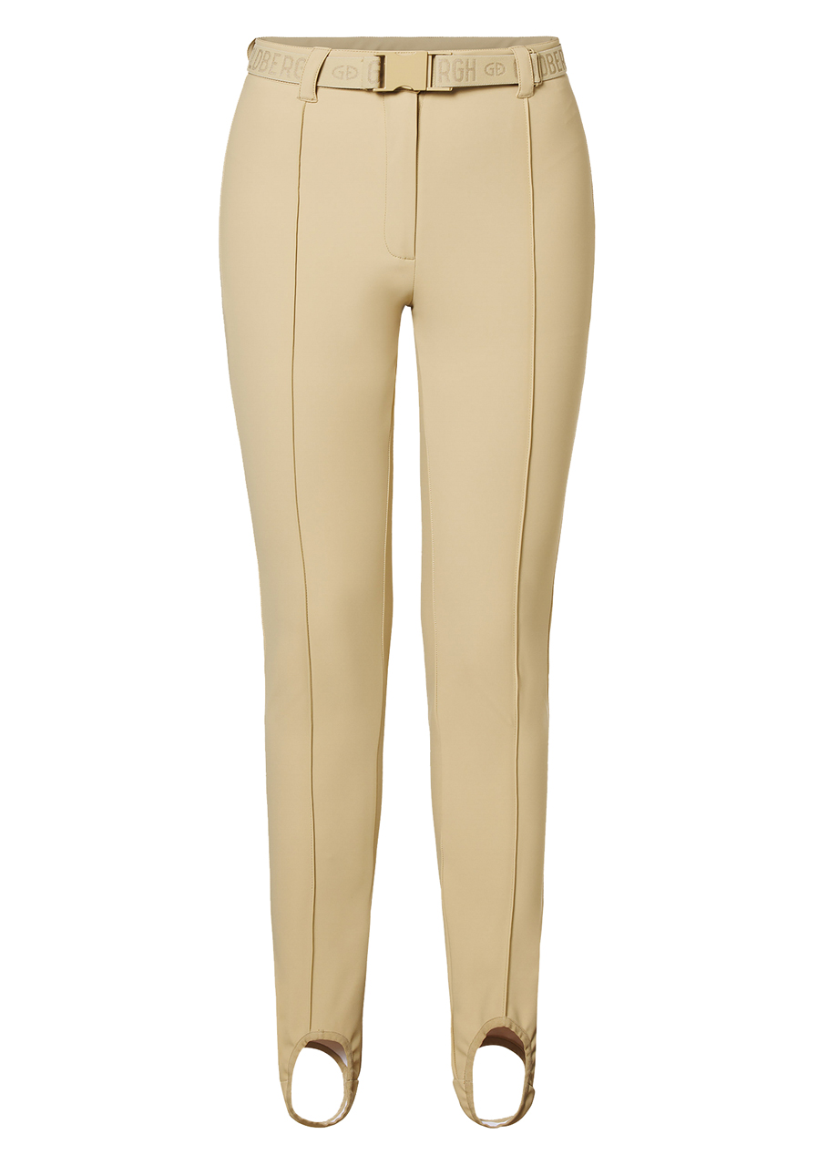 These elegant slim fit trousers combine modern design with practical details. They feature an elastic waistband for comfortable wear and a zip pocket at the back for small essentials. Stirrup cuffs at the bottom hems ensure the pants stay securely in place. The fabric is water-resistant and breathable, making them ideal for various outdoor activities. We recommend choosing your regular size.