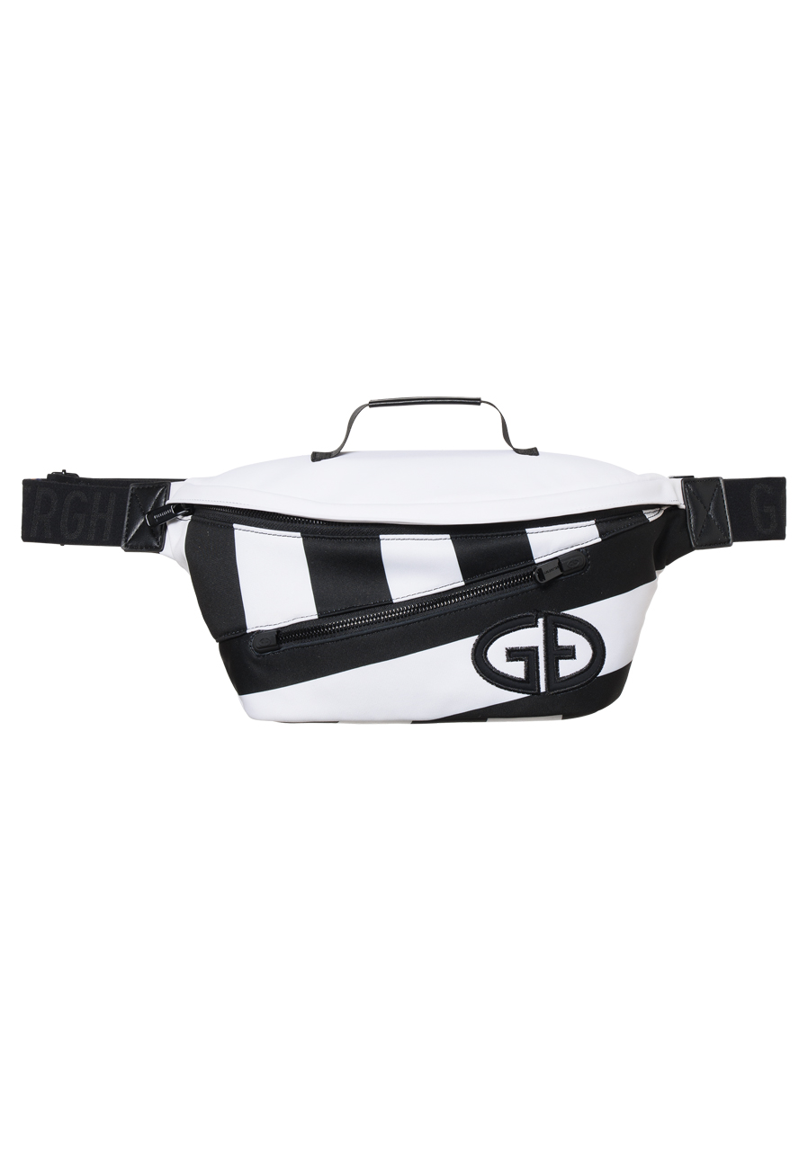 This modern fanny pack is the perfect accessory for both everyday wear and leisure activities. The adjustable elastic strap with logo and buckle ensures a secure and comfortable fit. The main zippered compartment is complemented by a front pocket and an inner zip pocket for small essentials. Inside, you will also find a detachable key ring. The front is decorated with an elegant GB logo in faux leather. Thanks to its water-resistant and breathable materials, your belongings remain protected even in unfavorable weather.