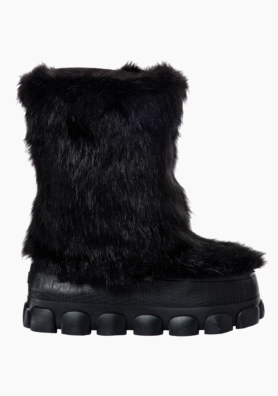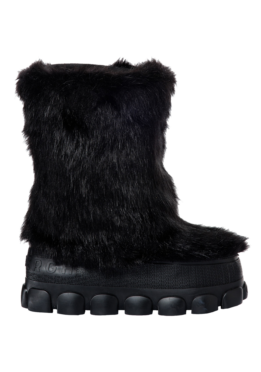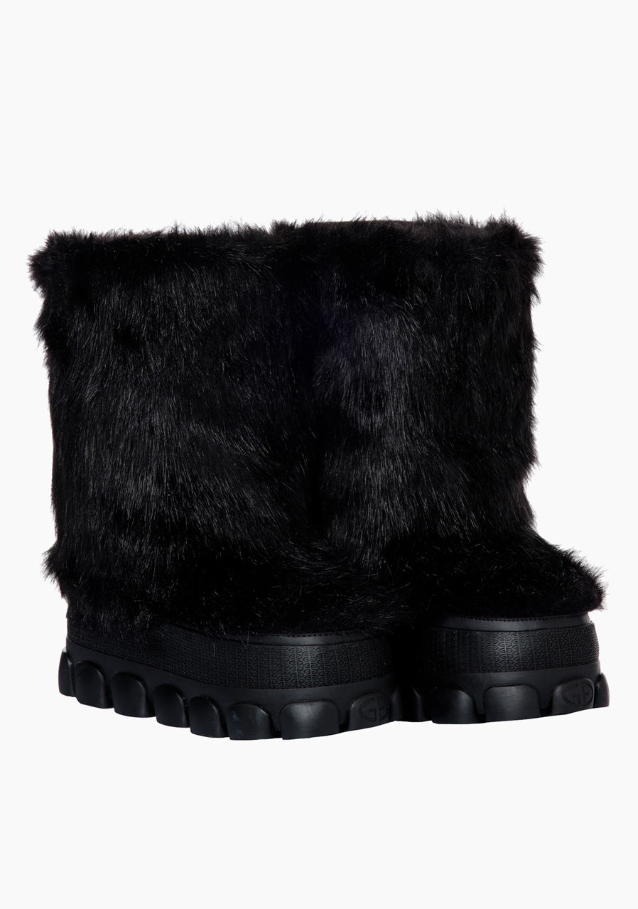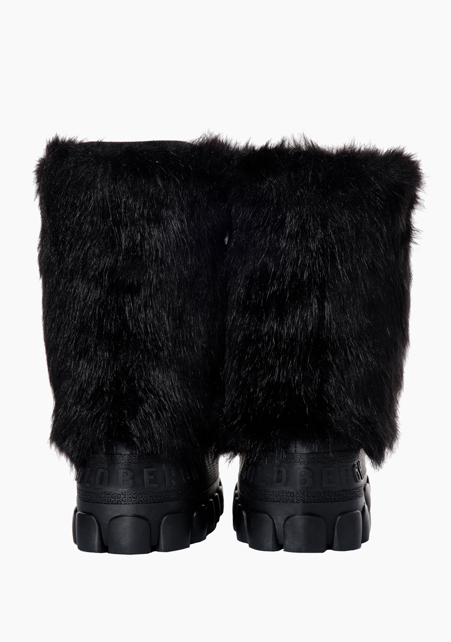 The Goldbergh Fun Fur Snowboot in black is a luxurious winter boot ideal for stylish days in the mountains. These snow boots feature a sturdy sole and an upper made from faux fur, giving them a unique look. They are equipped with a waterproof inner construction that ensures your feet stay dry even in demanding conditions. The back of the boots has elastic loops that make them easy to put on. The material composition includes 100% polyester on the upper and a velvet knit lining that is soft and comfortable to wear. The sole is made of durable rubber, providing a secure step on snow and ice. The Fun Fur Snowboot is not only functional but also an exceptionally stylish accessory for your winter getaway.
