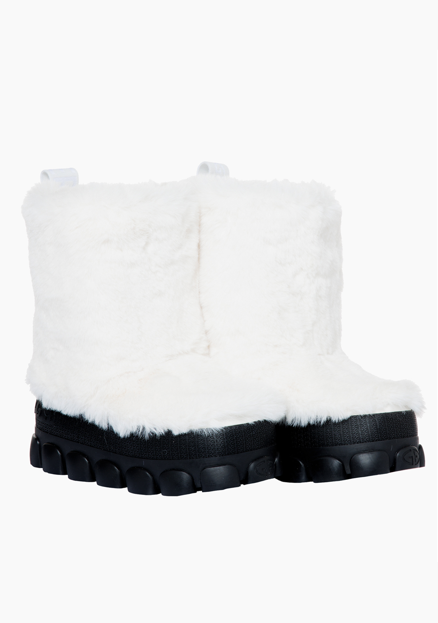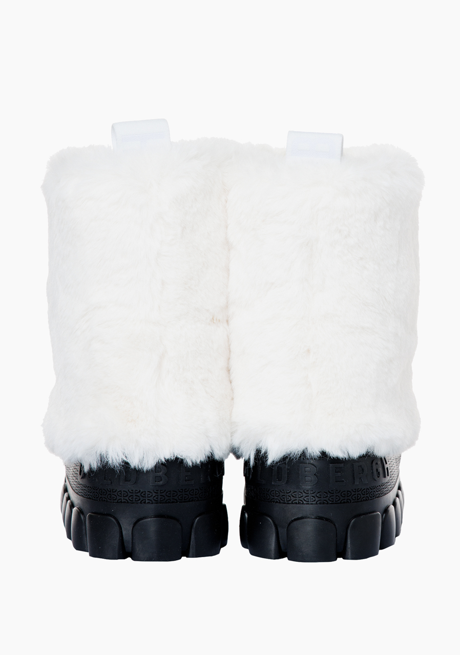 The Goldbergh Fun Fur Snowboot in cream is a luxurious winter boot ideal for stylish days in the mountains. These snow boots feature a sturdy sole and an upper made from faux fur, giving them a unique look. They are equipped with a waterproof inner construction that ensures your feet stay dry even in demanding conditions. The back of the boots has elastic loops that make them easy to put on. The material composition includes 100% polyester on the upper and a velvet knit lining that is soft and comfortable to wear. The sole is made of durable rubber, providing a secure step on snow and ice. The Fun Fur Snowboot is not only functional but also an exceptionally stylish accessory for your winter getaway.