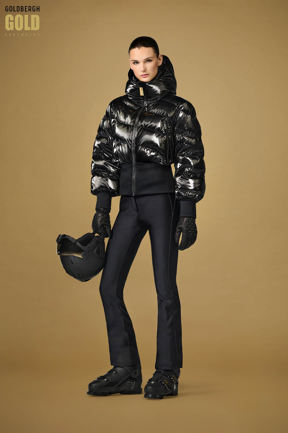 Parameters: Fit: Oversized fit Outer material: 52% polyester, 48% polyurethane Lining: 58% polyester, 42% recycled polyester (with anti-odor finish) Filling: 90/10 goose down (90% down, 10% feathers) – RDS certified Hood: Fixed Details: 2 outer pockets, 2 inner pockets, sleeve pocket for ski pass, special quilting, knitted cuffs inside sleeves Length: 58 cm (center back, size 38)